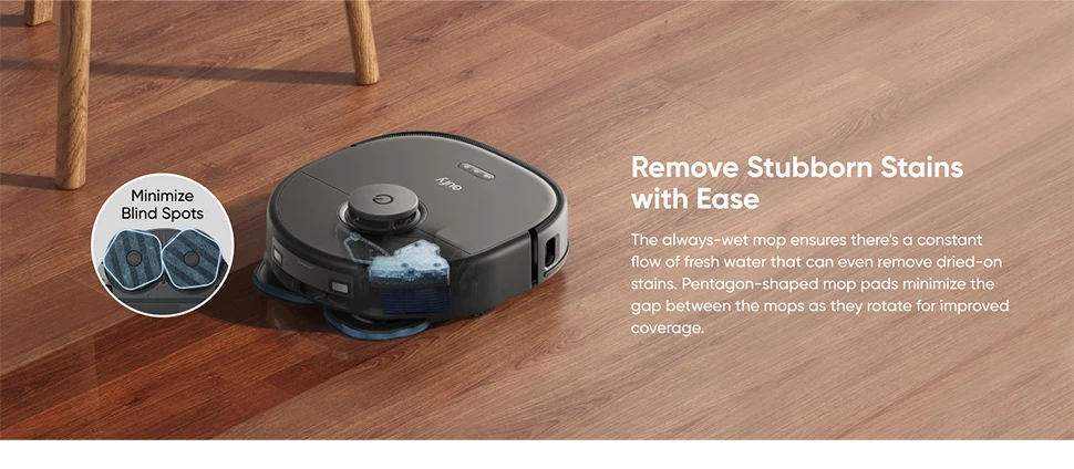 X10 Pro Omni's dual mop pads easily eradicate stains and leave you with floors that shine.
