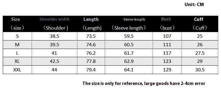 size_info: {"sizeInfoList":[{"length":{"cm":"107","inch":"42.13"},"size":"S","vid":-1},{"length":{"cm":"111","inch":"43.70"},"size":"M","vid":-2},{"length":{"cm":"117","inch":"46.06"},"size":"L","vid":-3},{"length":{"cm":"123","inch":"48.43"},"size":"XL","vid":-4},{"length":{"cm":"129","inch":"50.79"},"size":"XXL","vid":-5}]}