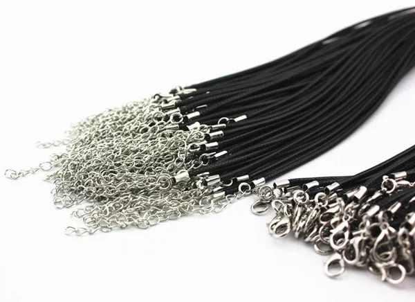 Fast Ship Wholesale 2mm Black Wax Leather Cord Necklace Rope 45cm Chain Lobster Clasp DIY Jewelry Accessories 100pcs/lot