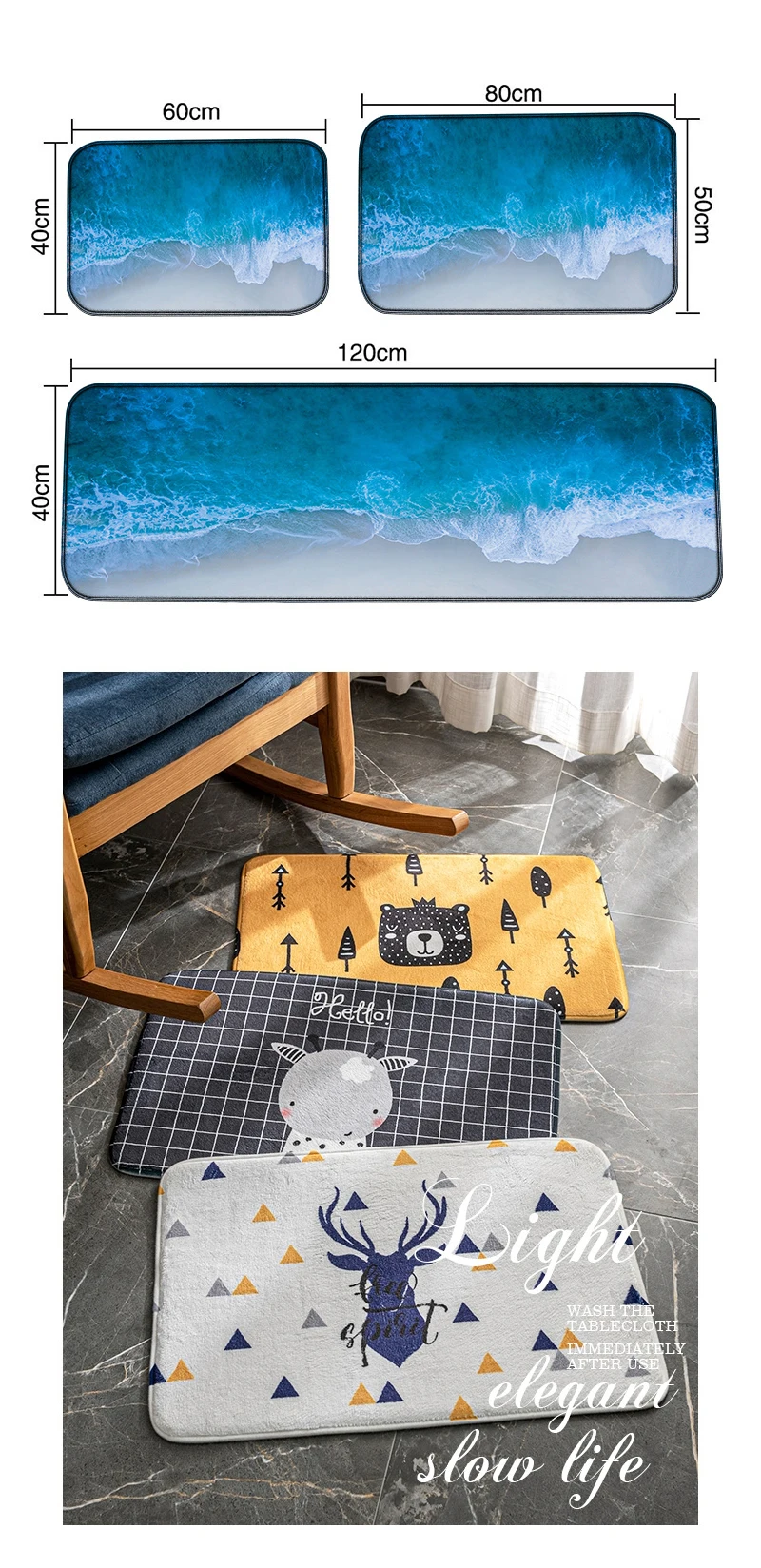 Product advantage (1) soft and comfortable, good breathability and anti-static. (2) Easy to clean, can be washed directly by washing machine or hand, without fading. (3) Environmentally friendly printing and dyeing, no odor, no harmful substances. (4) Durable and durable, Good slip resistance,Protective floor. (5)The edges of the carpet are carefully sewn to ensure quality and longer life. (6)Floor mat can be customized according to the picture, color, if you need to customize, please contact us.