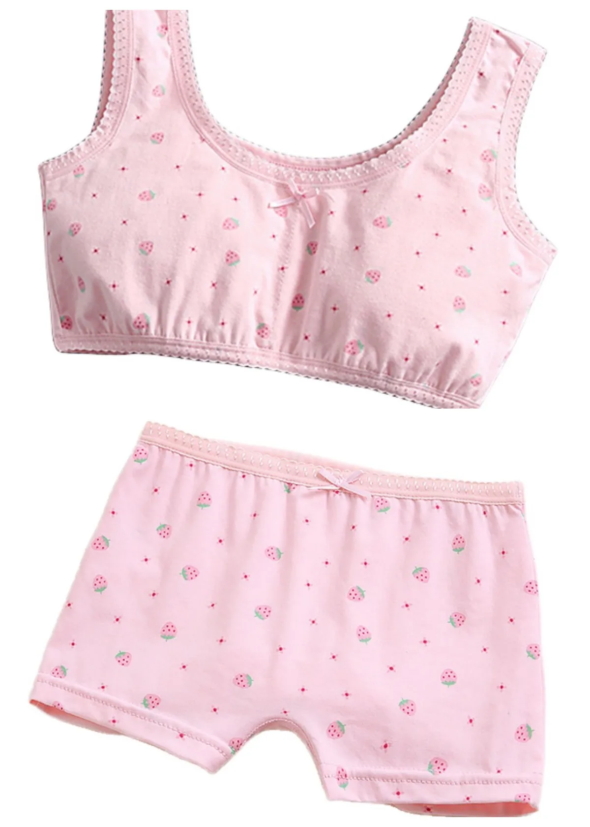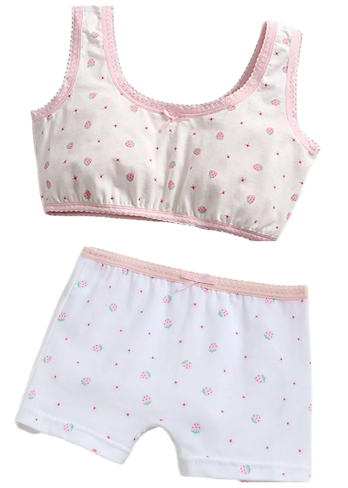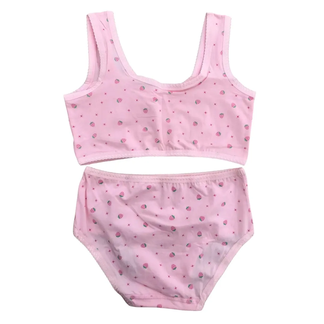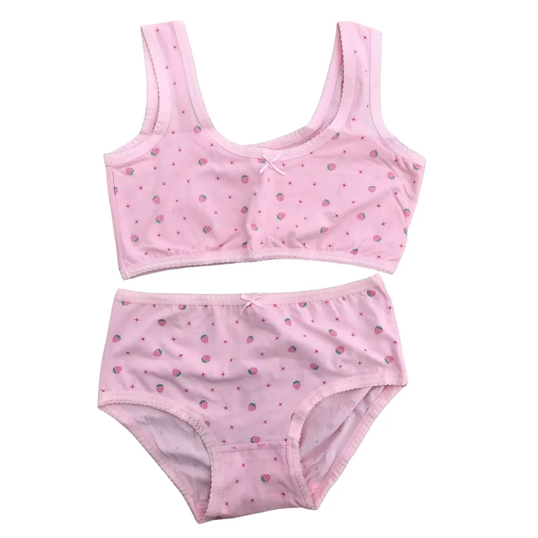 Girl Bra Boxers Set Cute Floral Strawberry Prints Teens Underwear Size 130-160 Big Girl Underwear Bra Panties Set