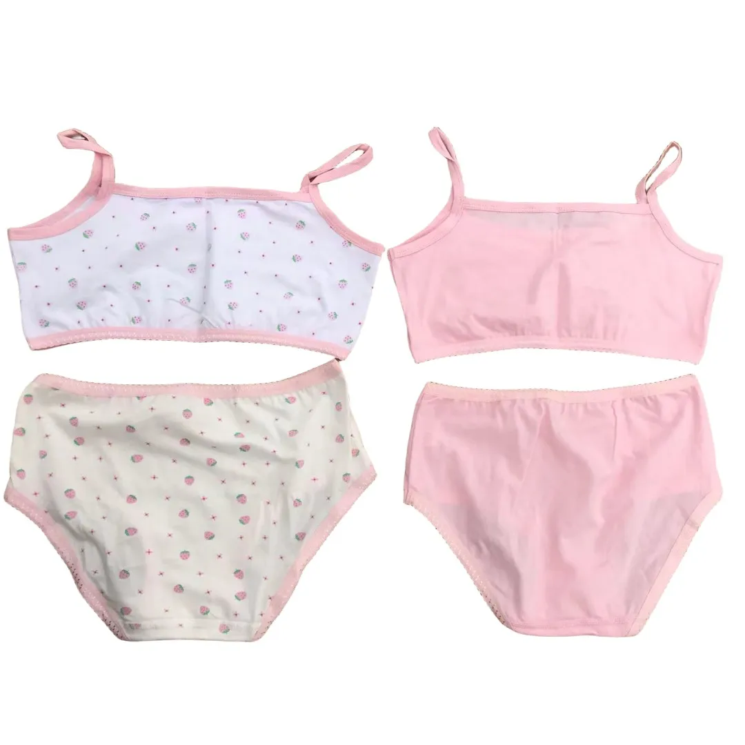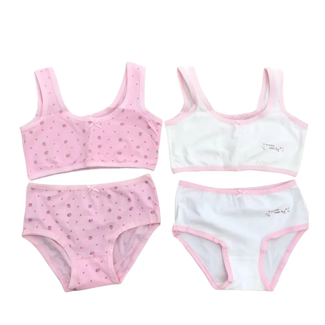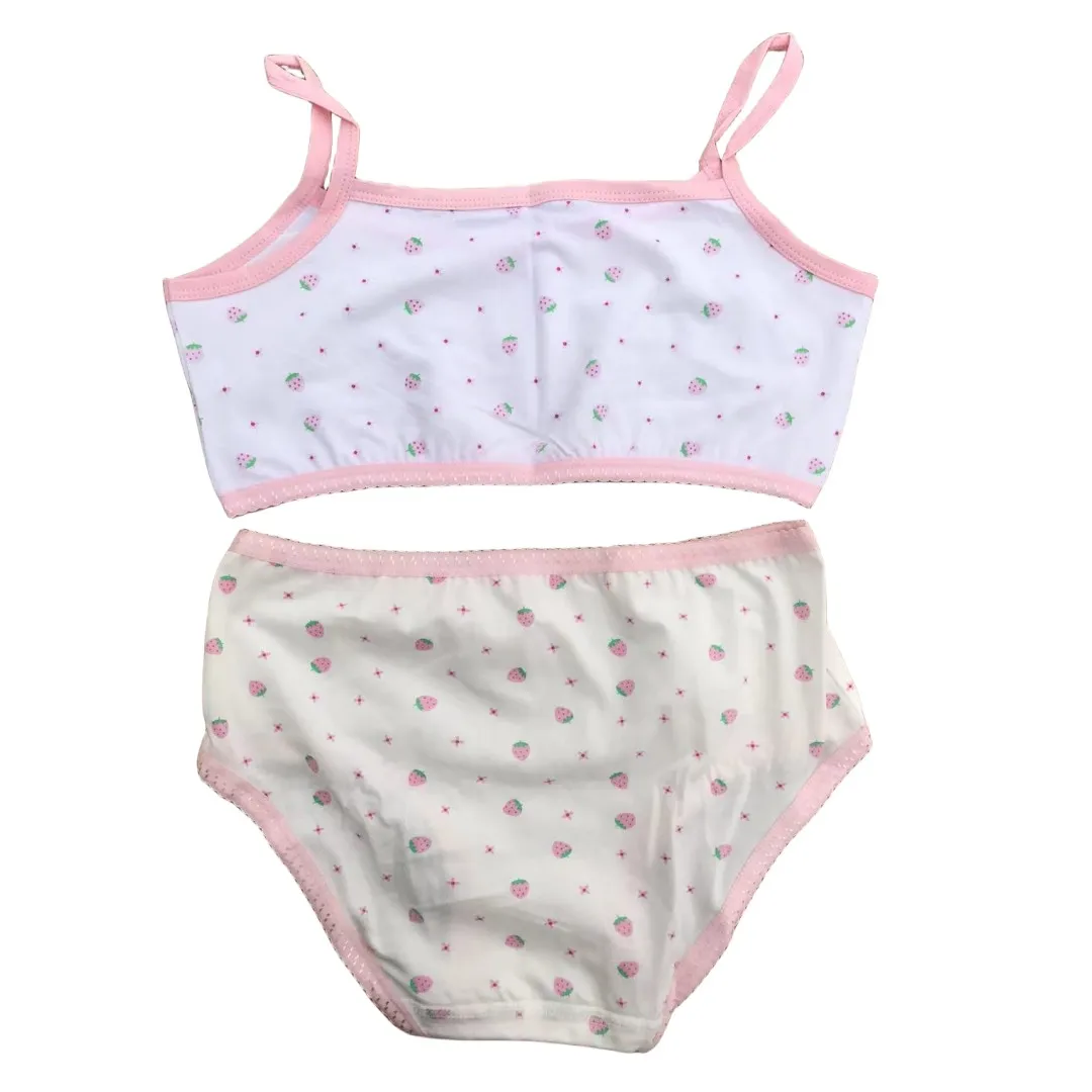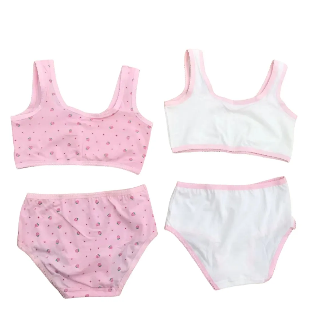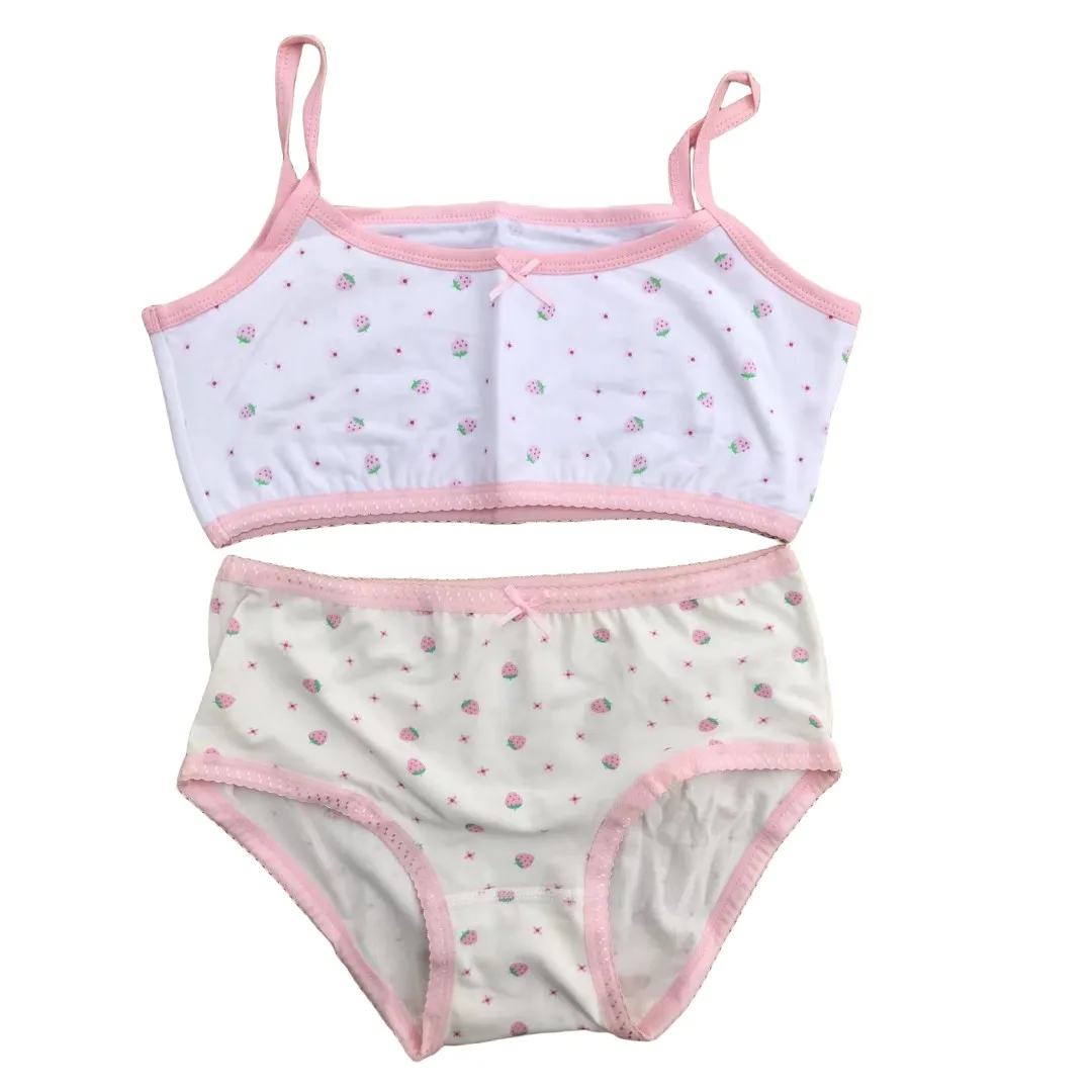 Girl Bra Boxers Set Cute Floral Strawberry Prints Teens Underwear Size 130-160 Big Girl Underwear Bra Panties Set