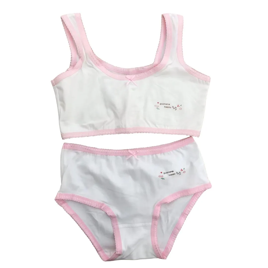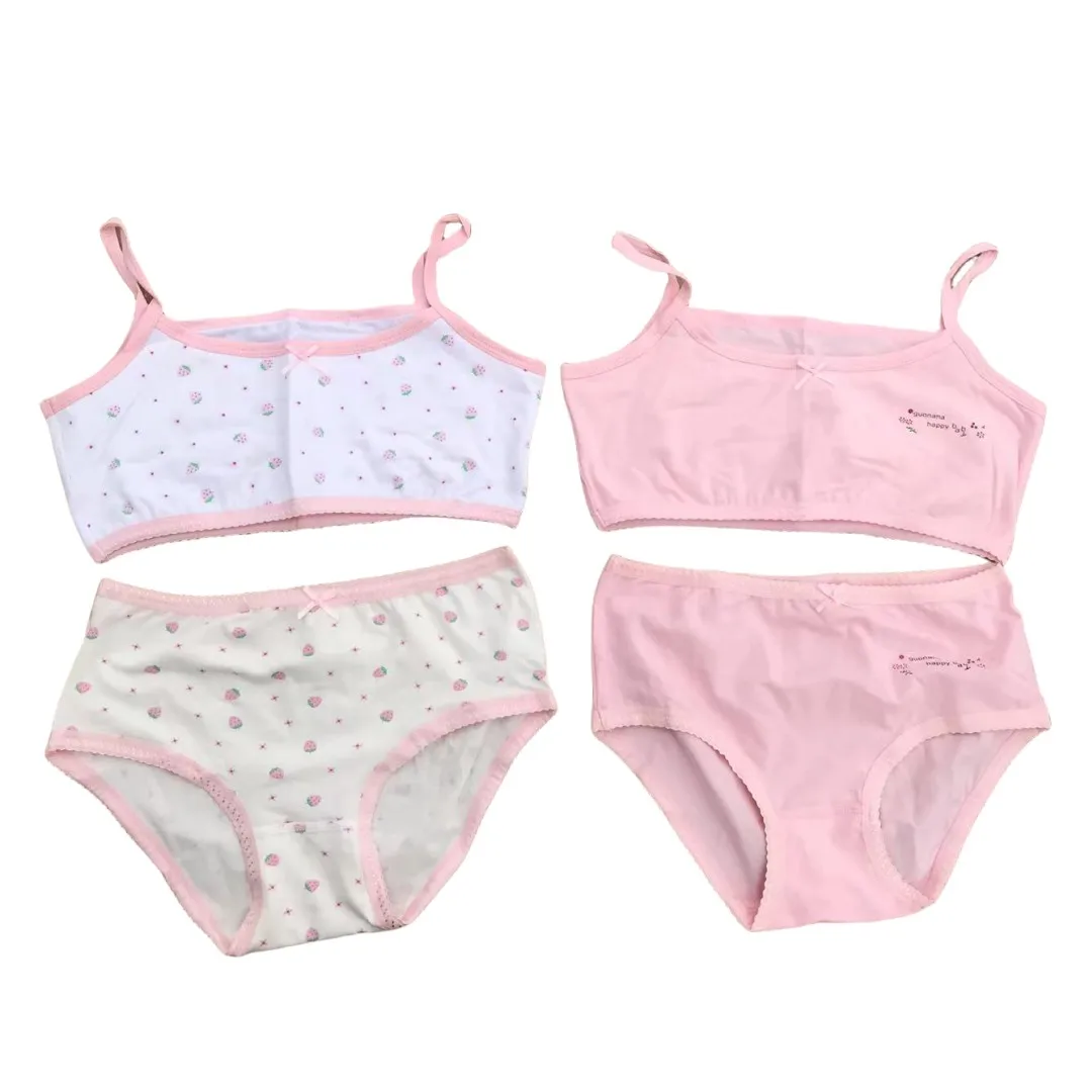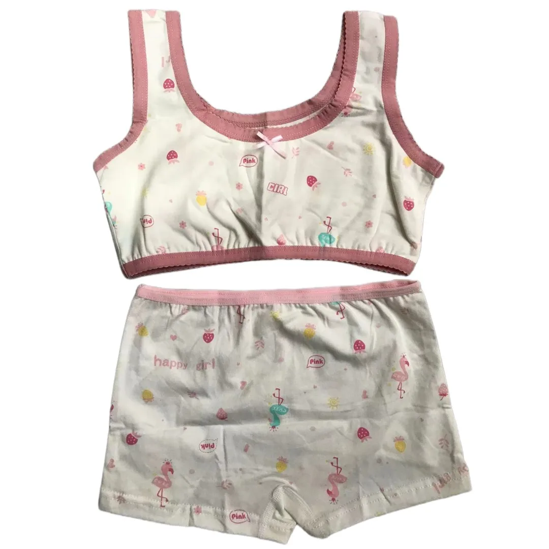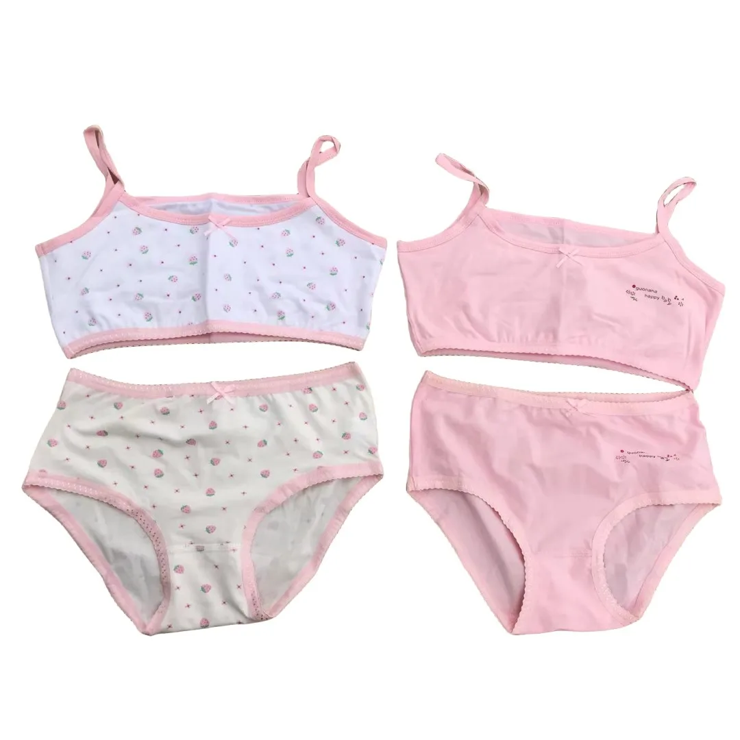 Girl Bra Boxers Set Cute Floral Strawberry Prints Teens Underwear Size 130-160 Big Girl Underwear Bra Panties Set