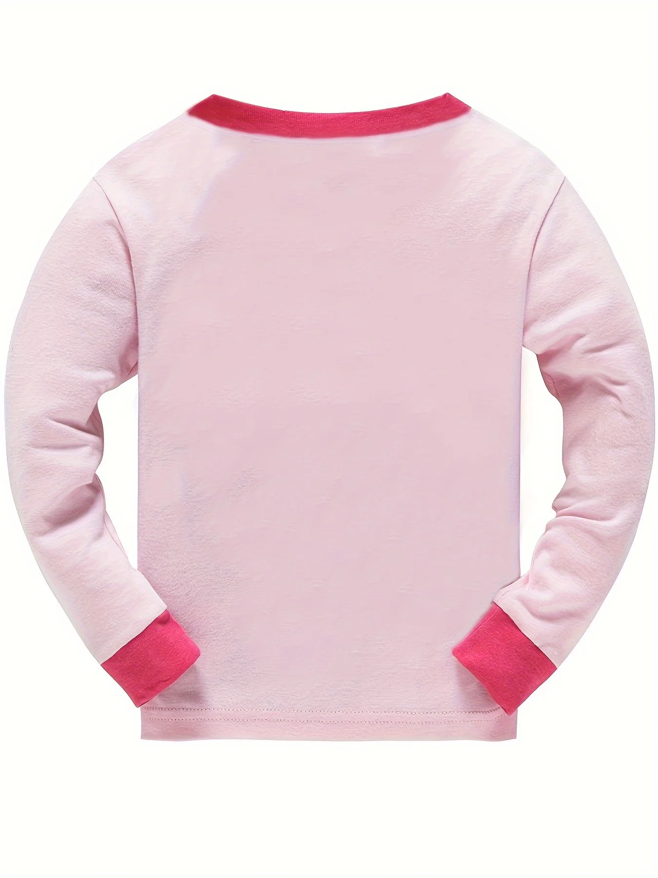 2pcs Girls Casual Cartoon Unicorn Print Crew Neck Pink Cotton Pajama Sets