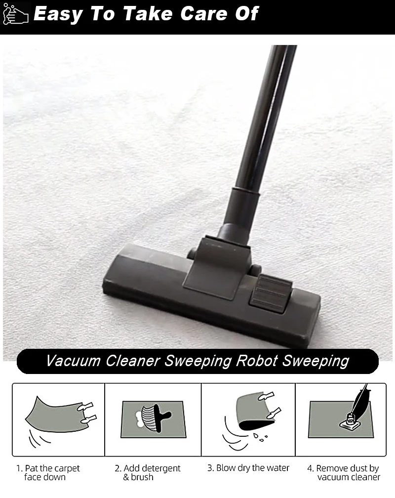 Washing method: hand washing or vacuum cleanerIf you receive some uneven wrinkles, please shake it or leave it naturally for two days to restore it (Ps: Because the volume of the package is strictly limited by international logistics, the carpet is folded and packed, so when you receive the package and open it, you will feel some wrinkles