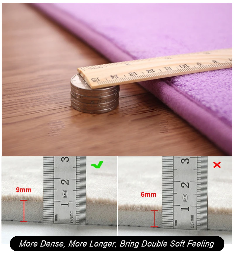Advantages: soft and comfortable feel, bright color, strong elasticity, no hair loss, no fading, advanced environmental protection latex anti-slip backing.