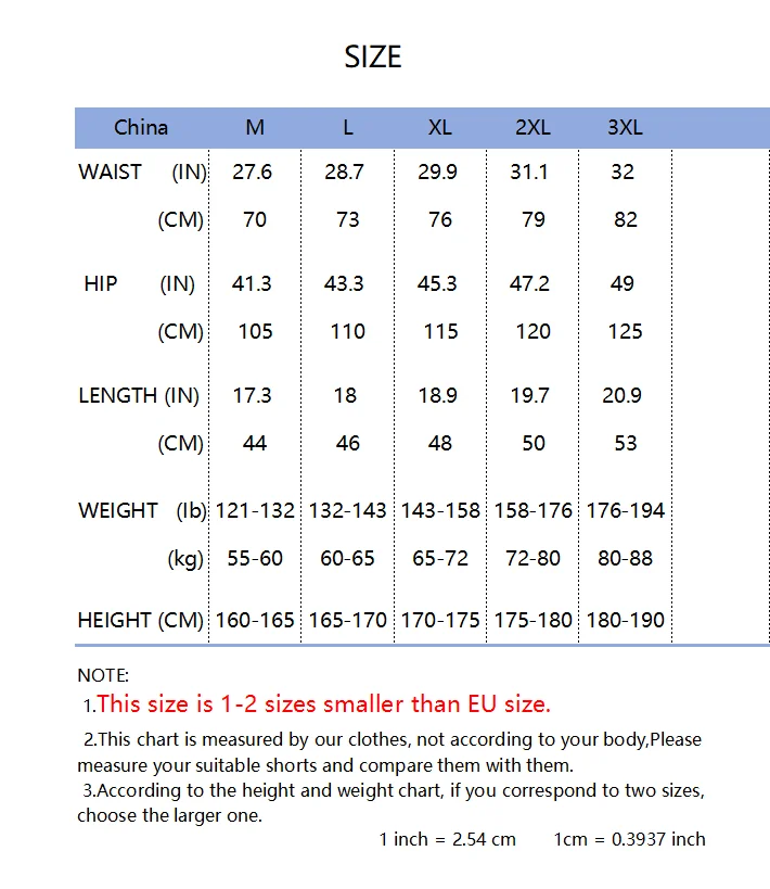 2. If your height and weight are between two sizes, you need to choose the bigger one.