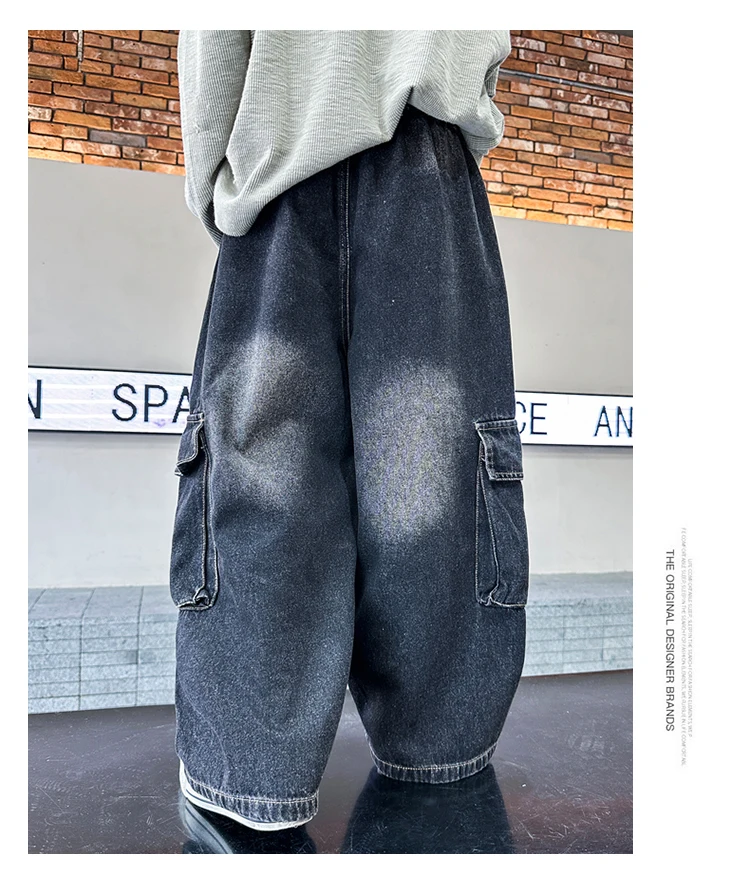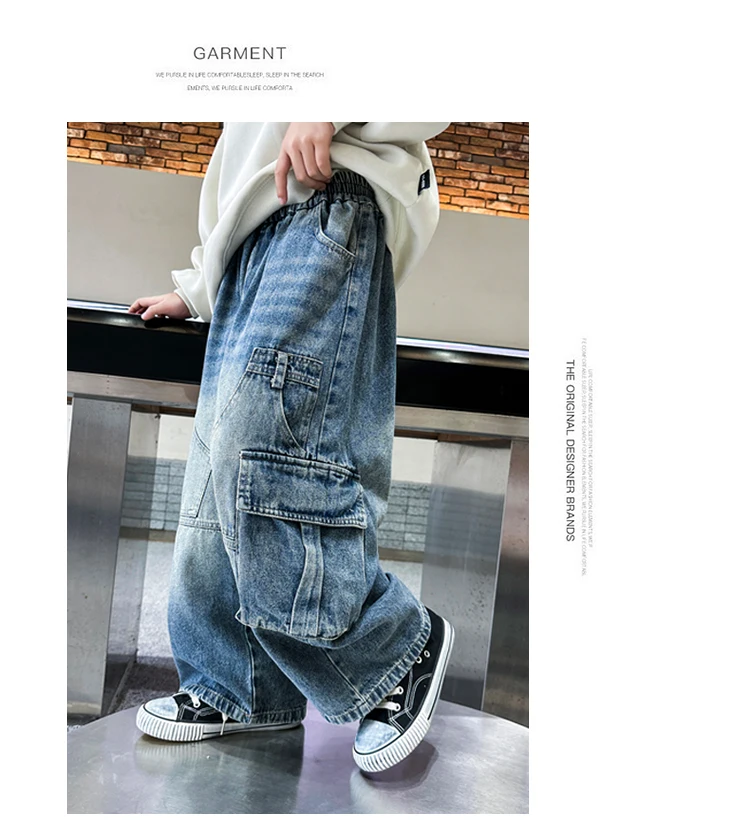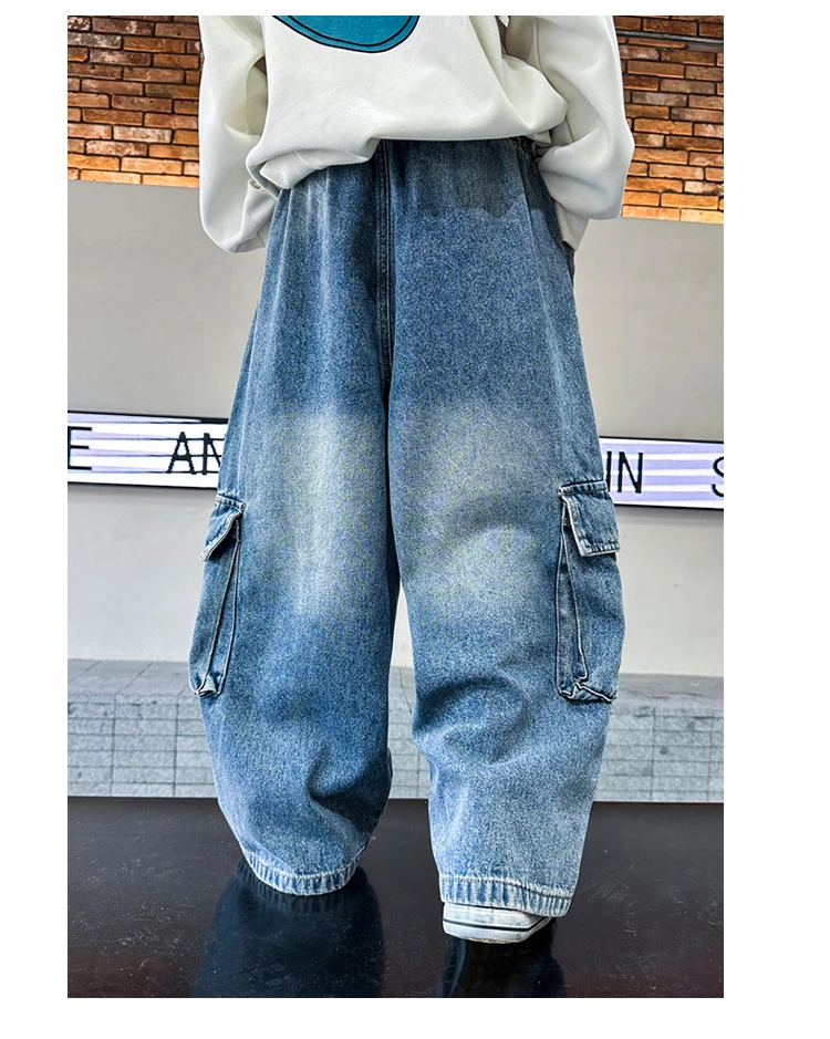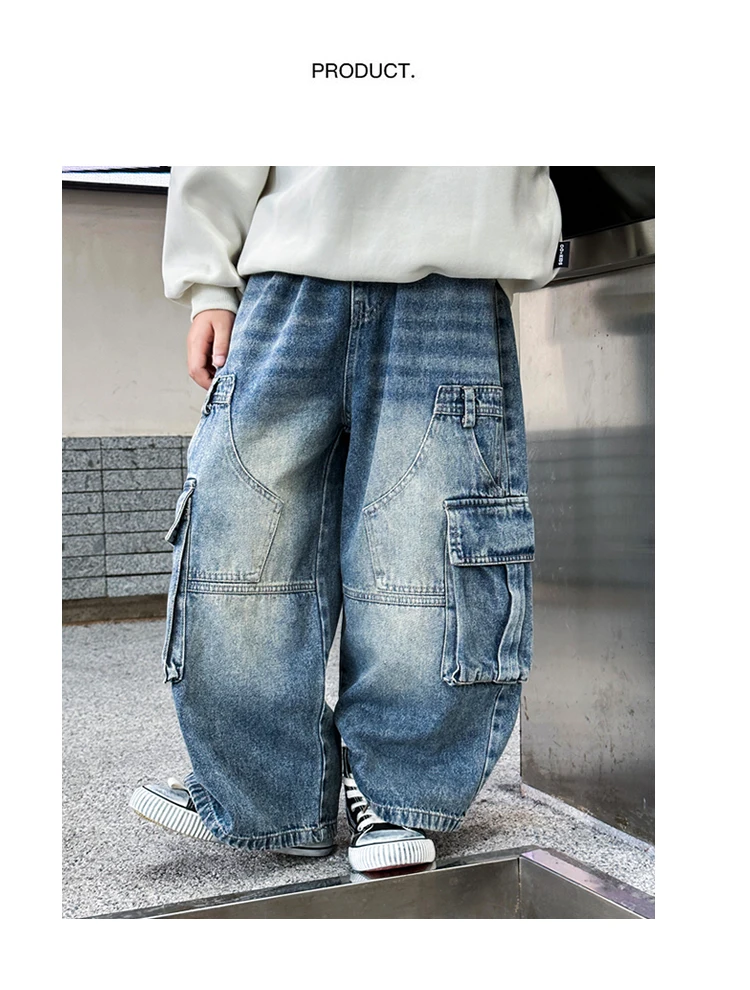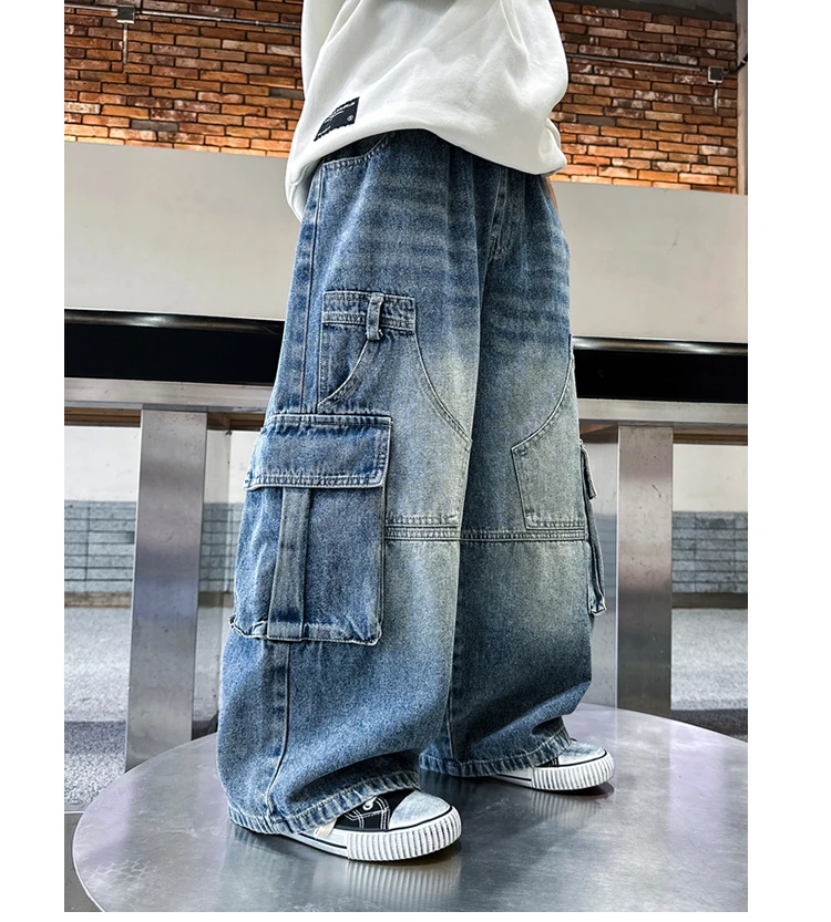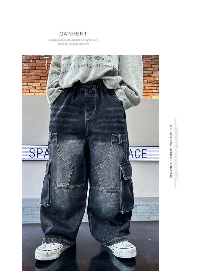 High Quality Kids Heavy Work Baggy Cargo Jeans for Teens Boy Loose Fit Pocket Denim Pants Tweens Child Fashion Jeans TrousersStyle: Boys JeansDesign: Latest Design & New ArrivalOccasion: Party,Cocktail,WeddingModel Photo: 100% In-Kind Shooting