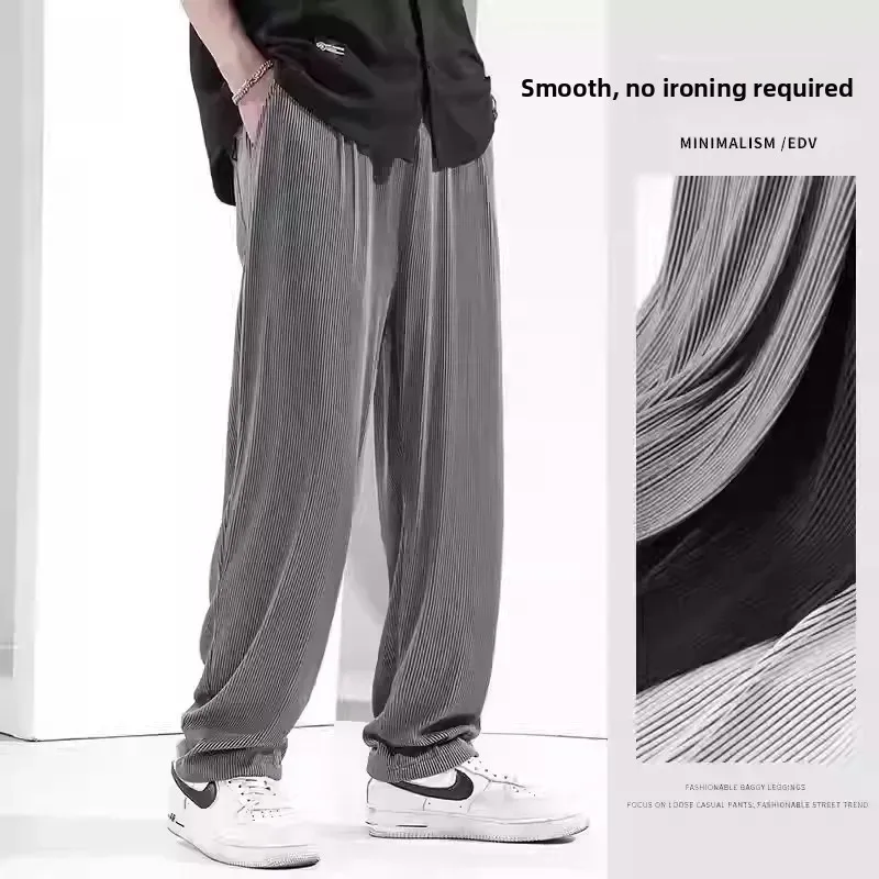 • High-End Style : These ice silk pants offer a high-end look with their loose, straight cut and all-match dipped feeling, perfect for any casual occasion.