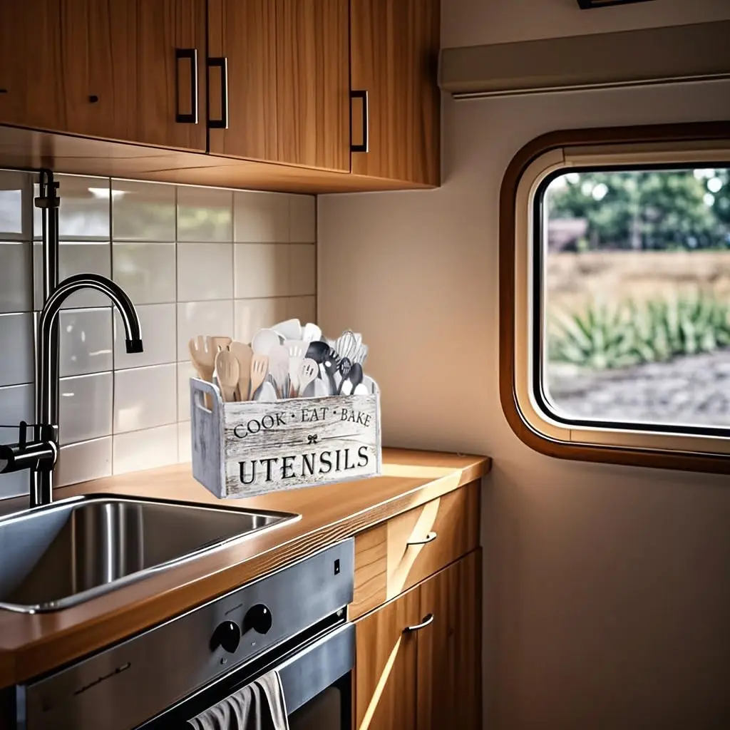 2. Versatility: This storage box can not only be used to store knives, forks, and cutlery, but also has multiple partitions to store cooking tools and small items.