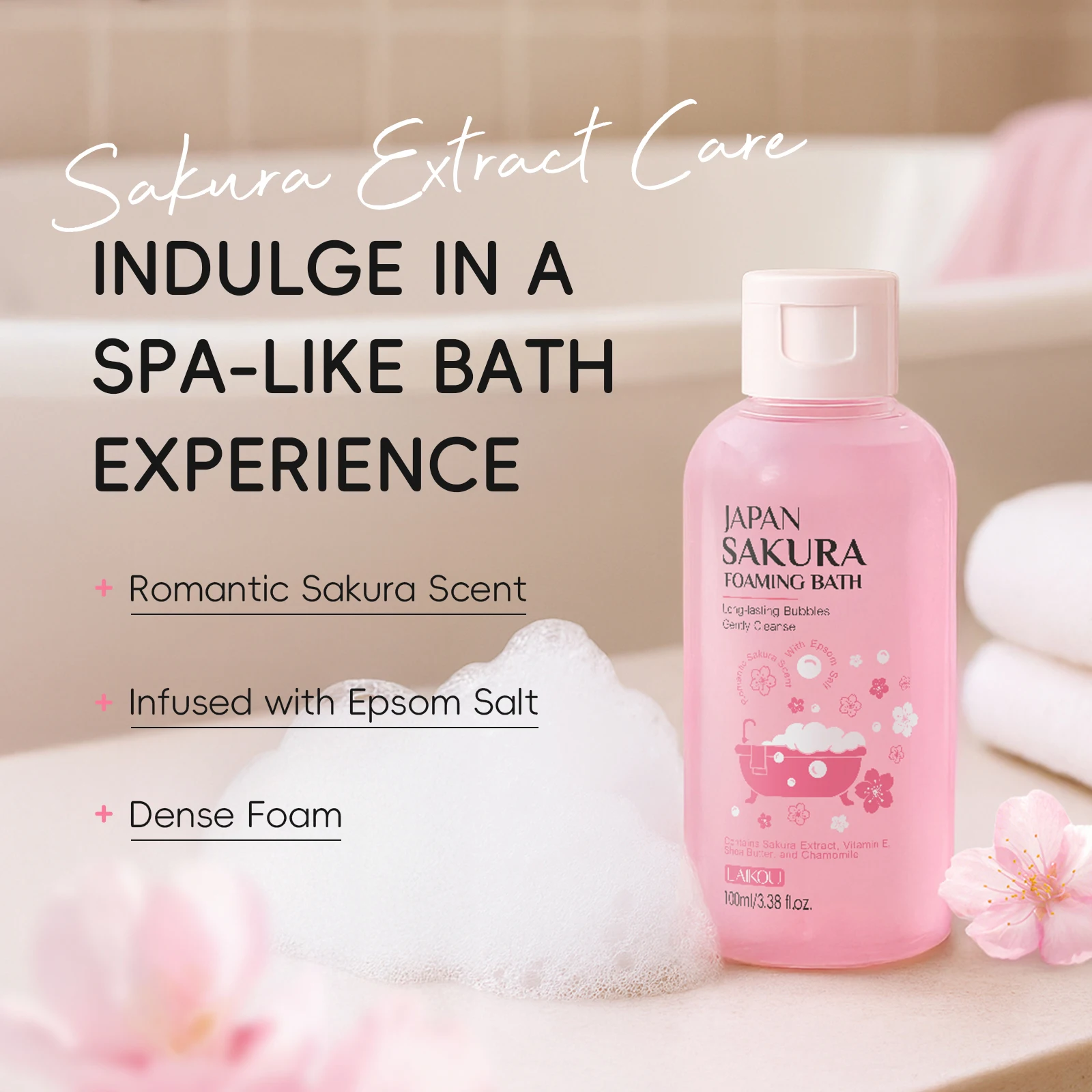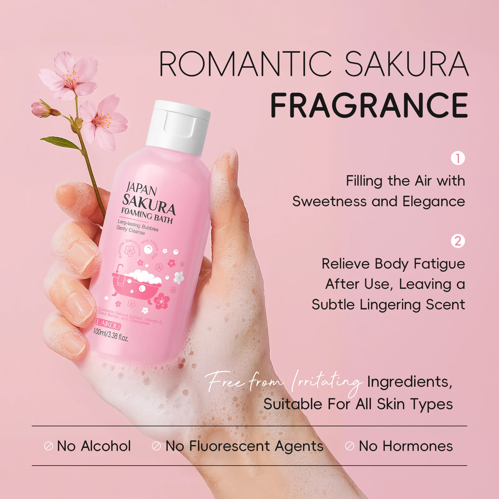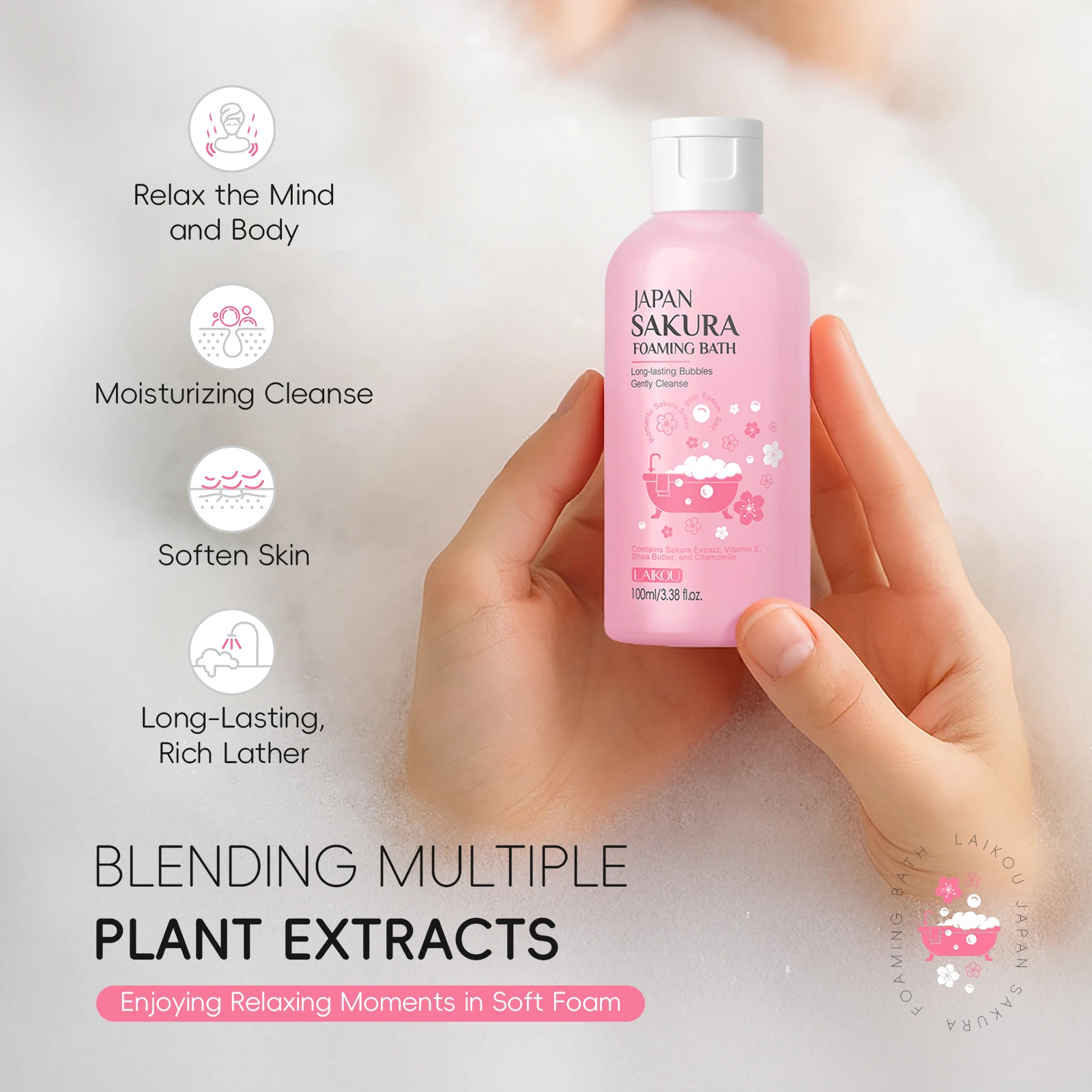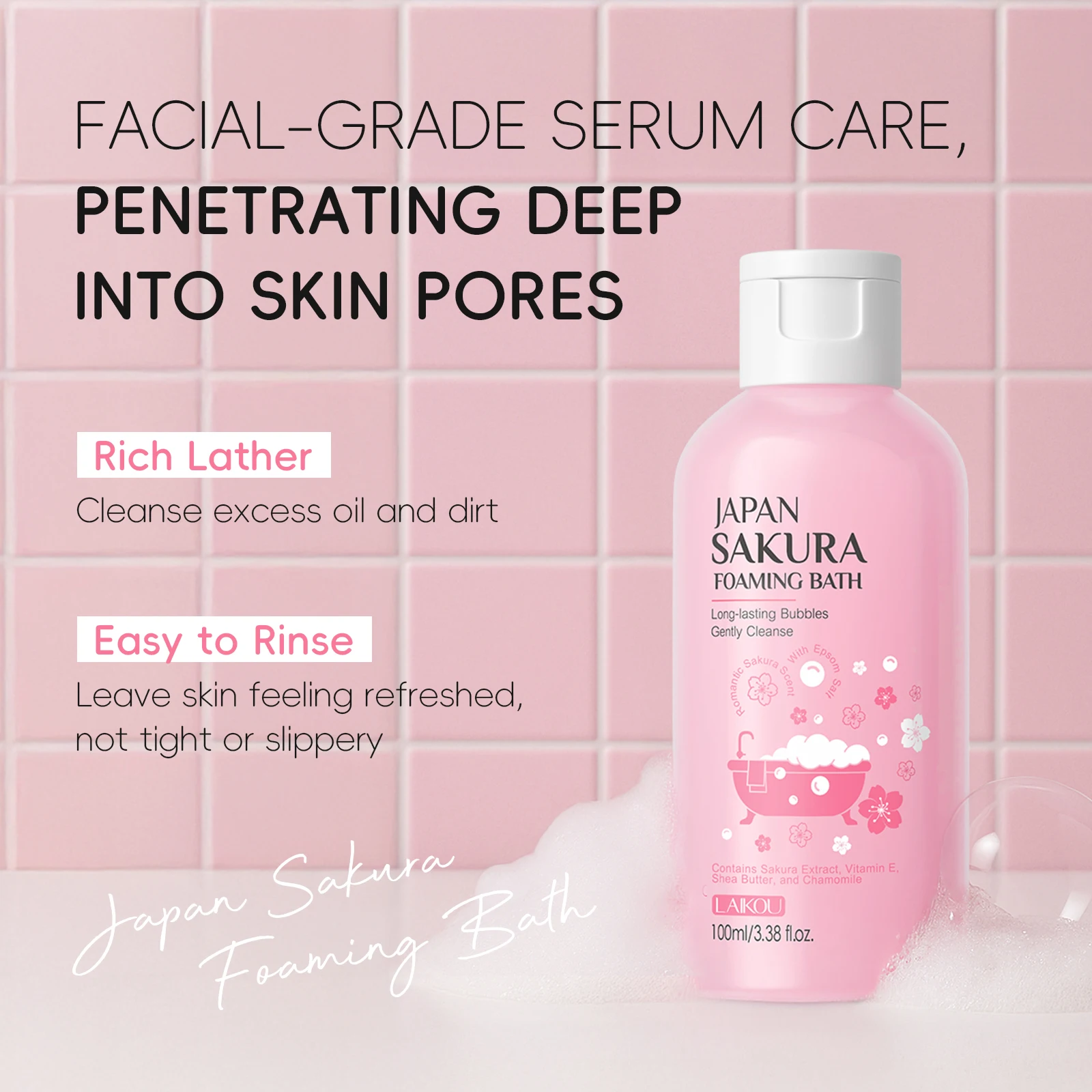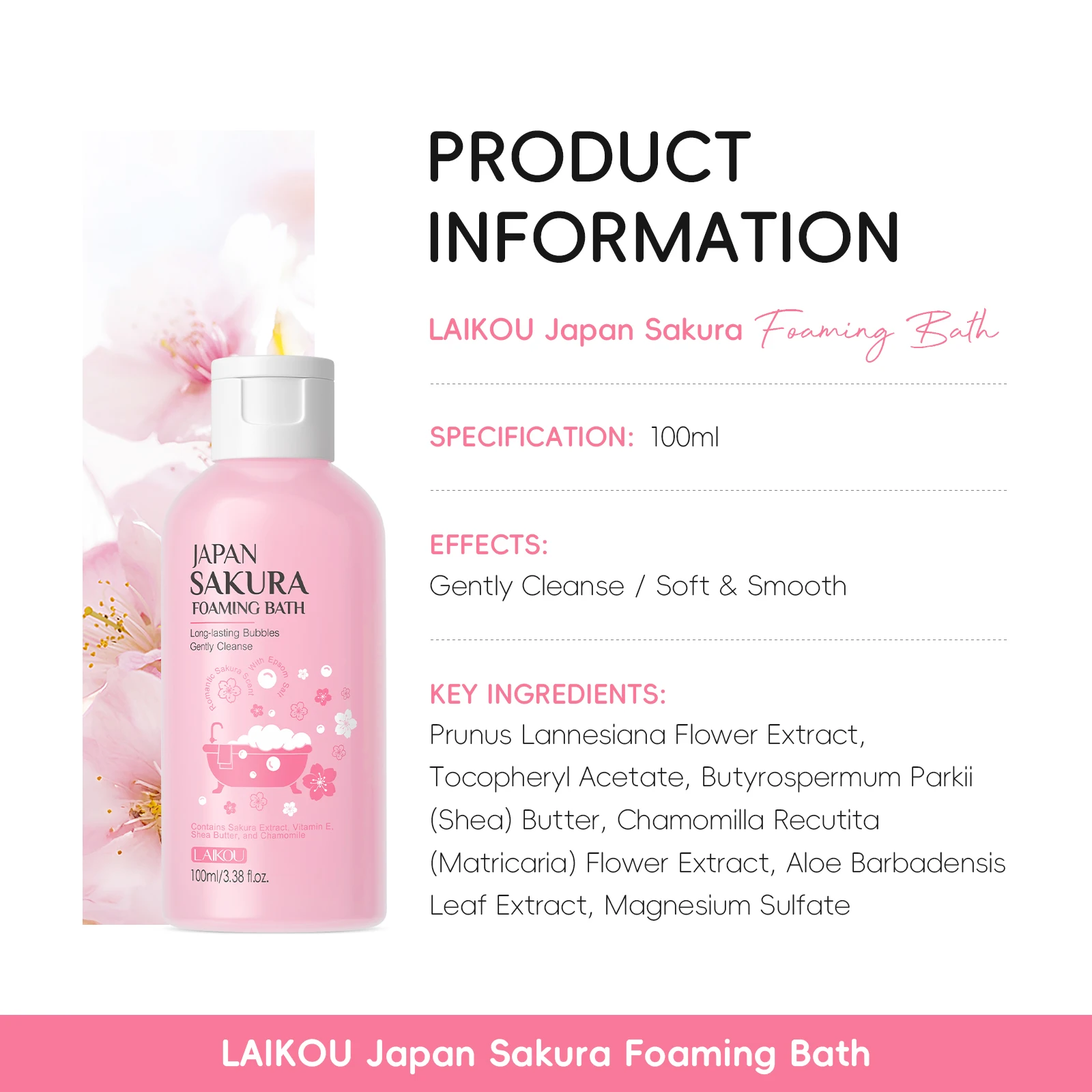 Turn your bath into a Japanese sakura spa! LAIKOU Japan Sakura Foaming Bath gently cleanses skin, leaving it soft and smooth. Let the bubbles and sakura scent relax you!
