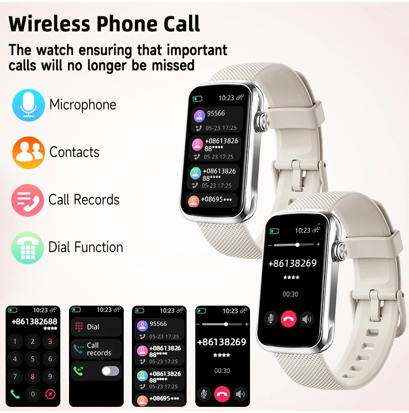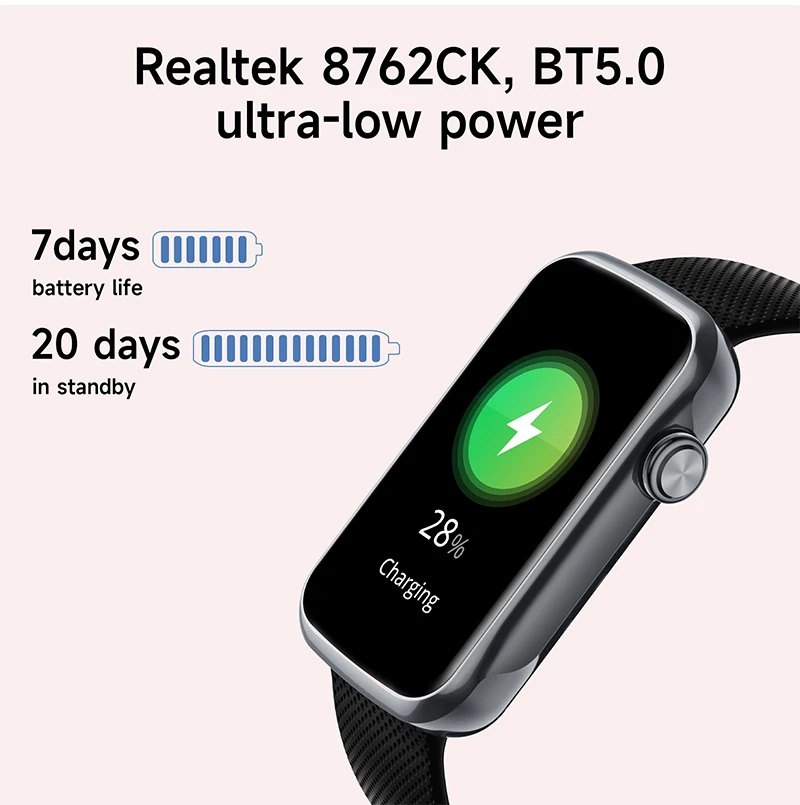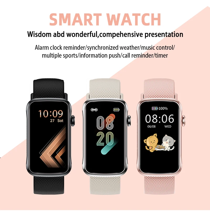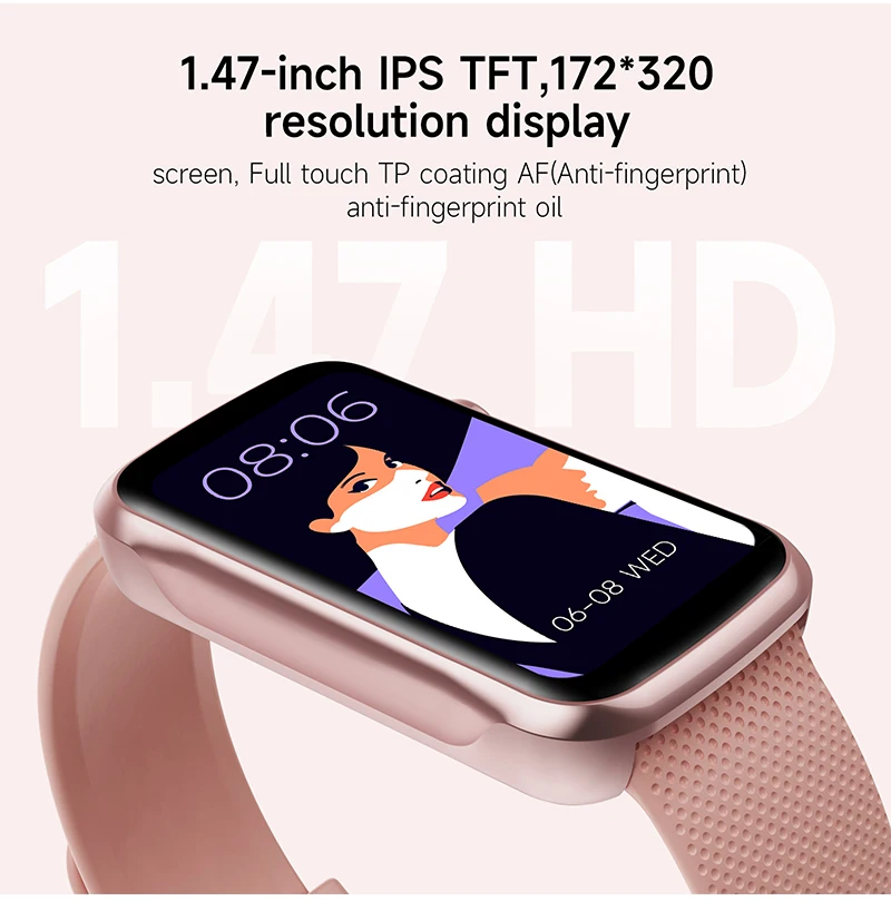 ▶Workout, Status, Heart Rate, Blood Oxygen, Sleep, Weather, Music Control, Breathing Training, Messages, Stopwatch, Find Phone, Timer, Brightness, Screen On Time, Watch Face Switching, Women's Health, Stress Test