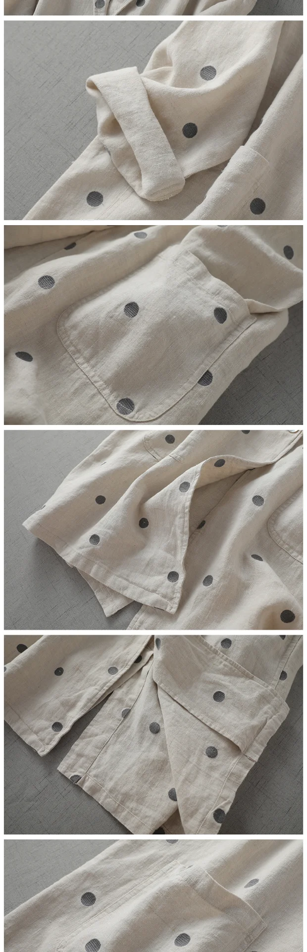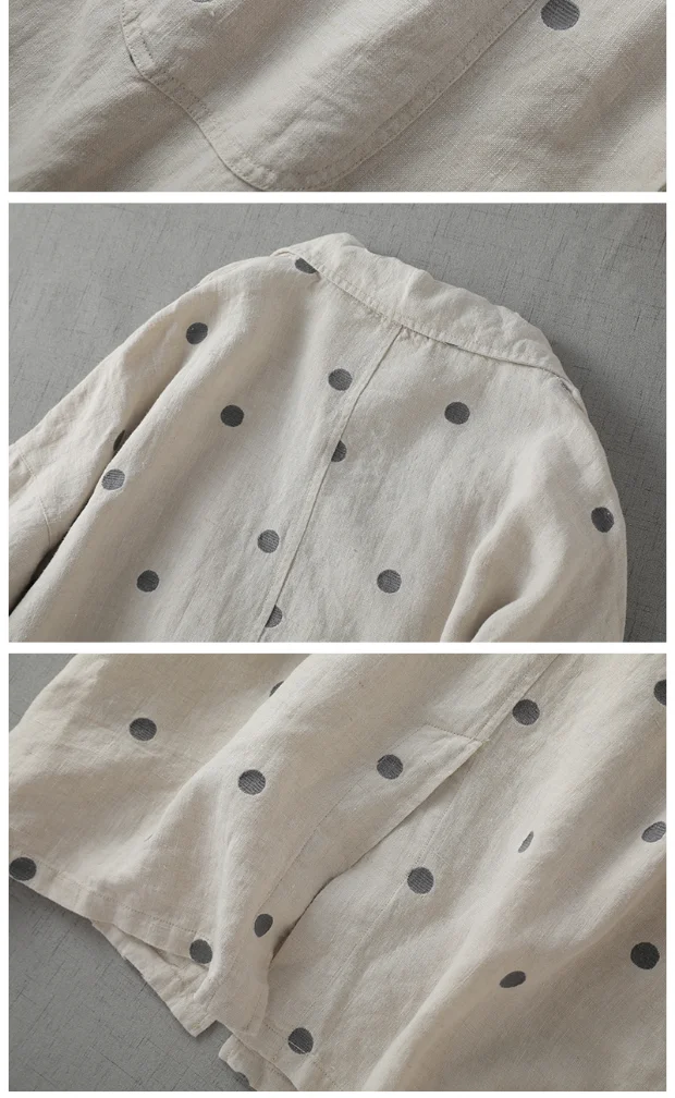 The loose fit design of this Japanese-style checkered embroidery linen suit jacket provides comfort and freedom of movement, perfect for casual wear.