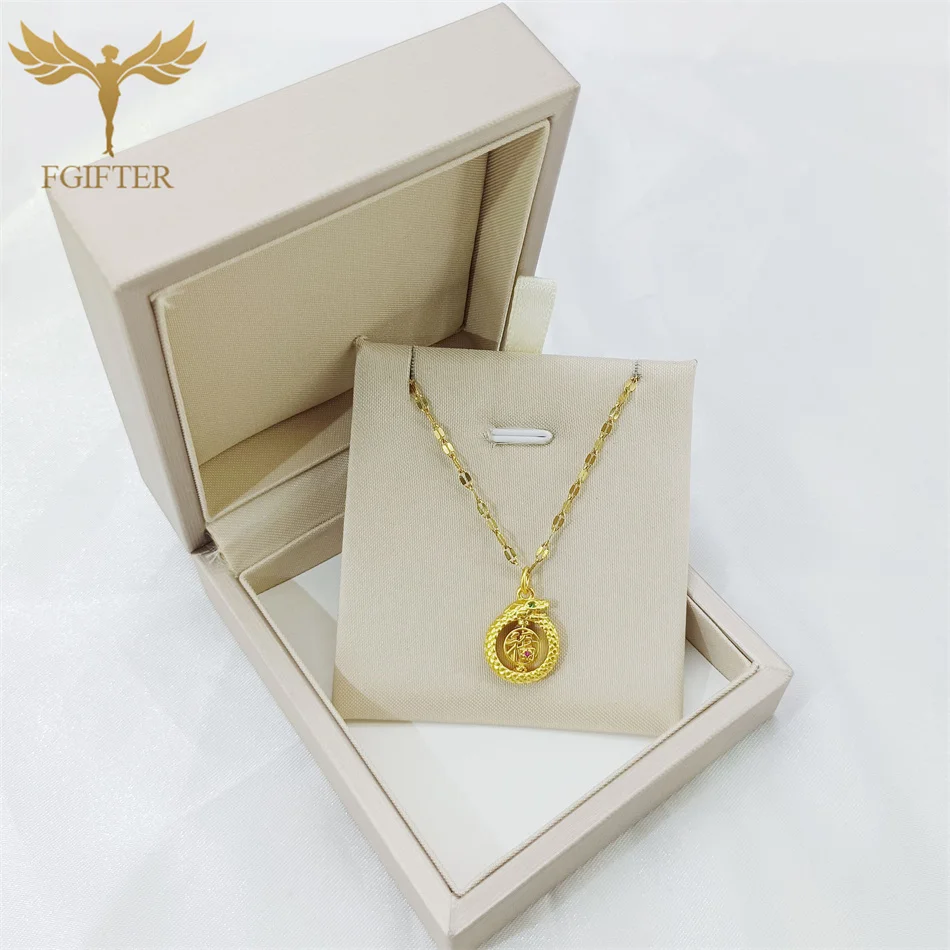 Lucky Gold Plated Chinese Blessing Words Rotatable Hanging Steel Neck Chain Zodi