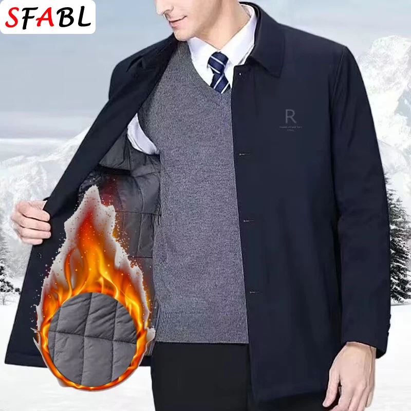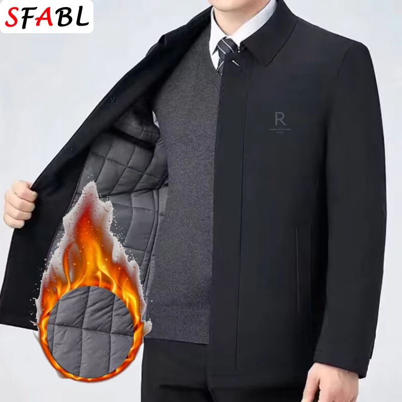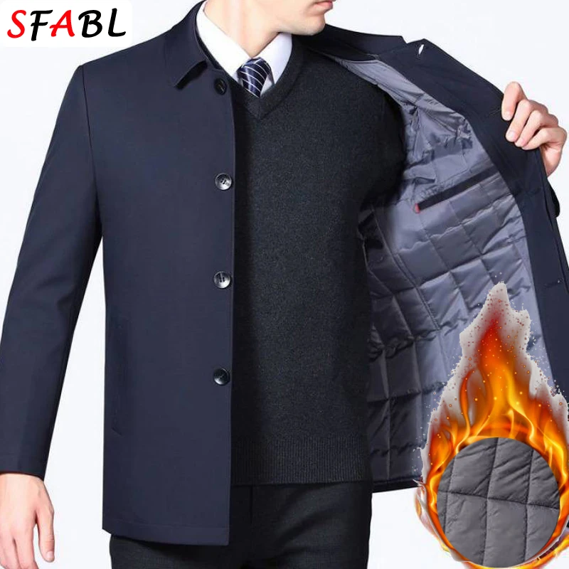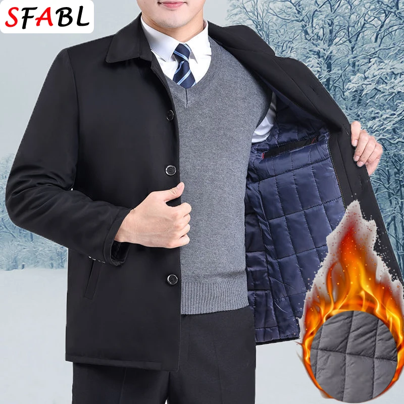 Autumn Winter Thick Warm Jacket Men Fleece Lined Winter Jackets for Men Solid Color Business Men's Winter Coats Windbreak