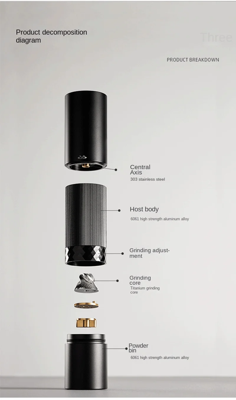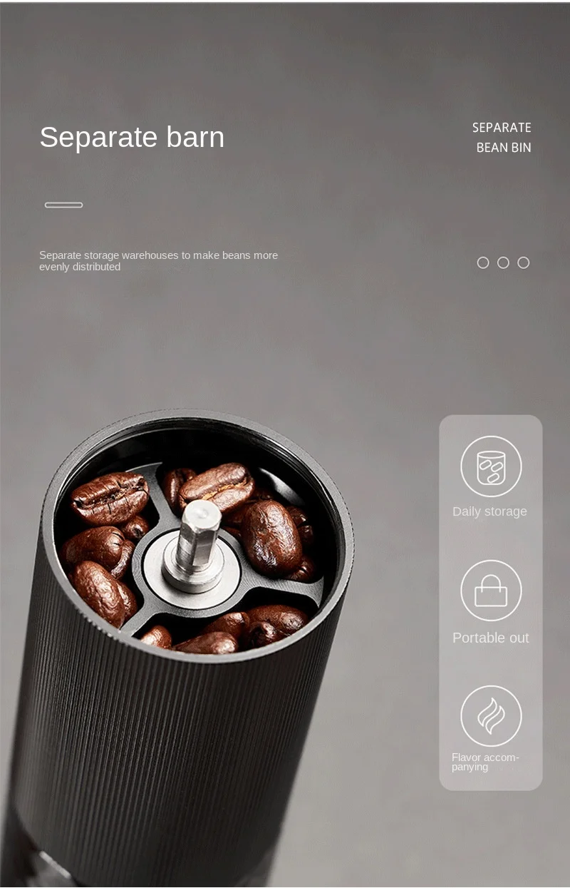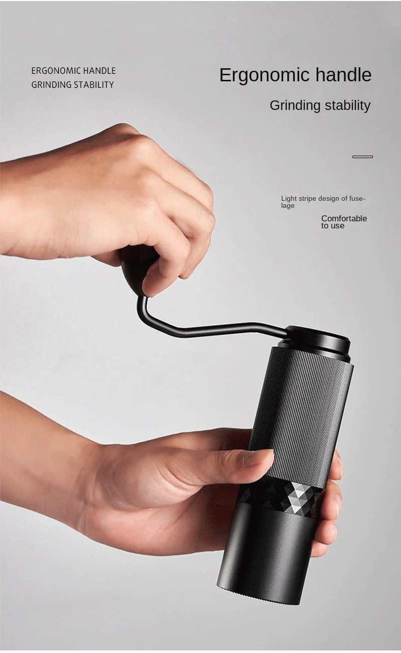 Product features: Alloy body, light stripe design in the middle, comfortable and stable grip without slipping. Easily grind beans, experience the joy of grinding, and control the fineness of the grinding particles by yourself.