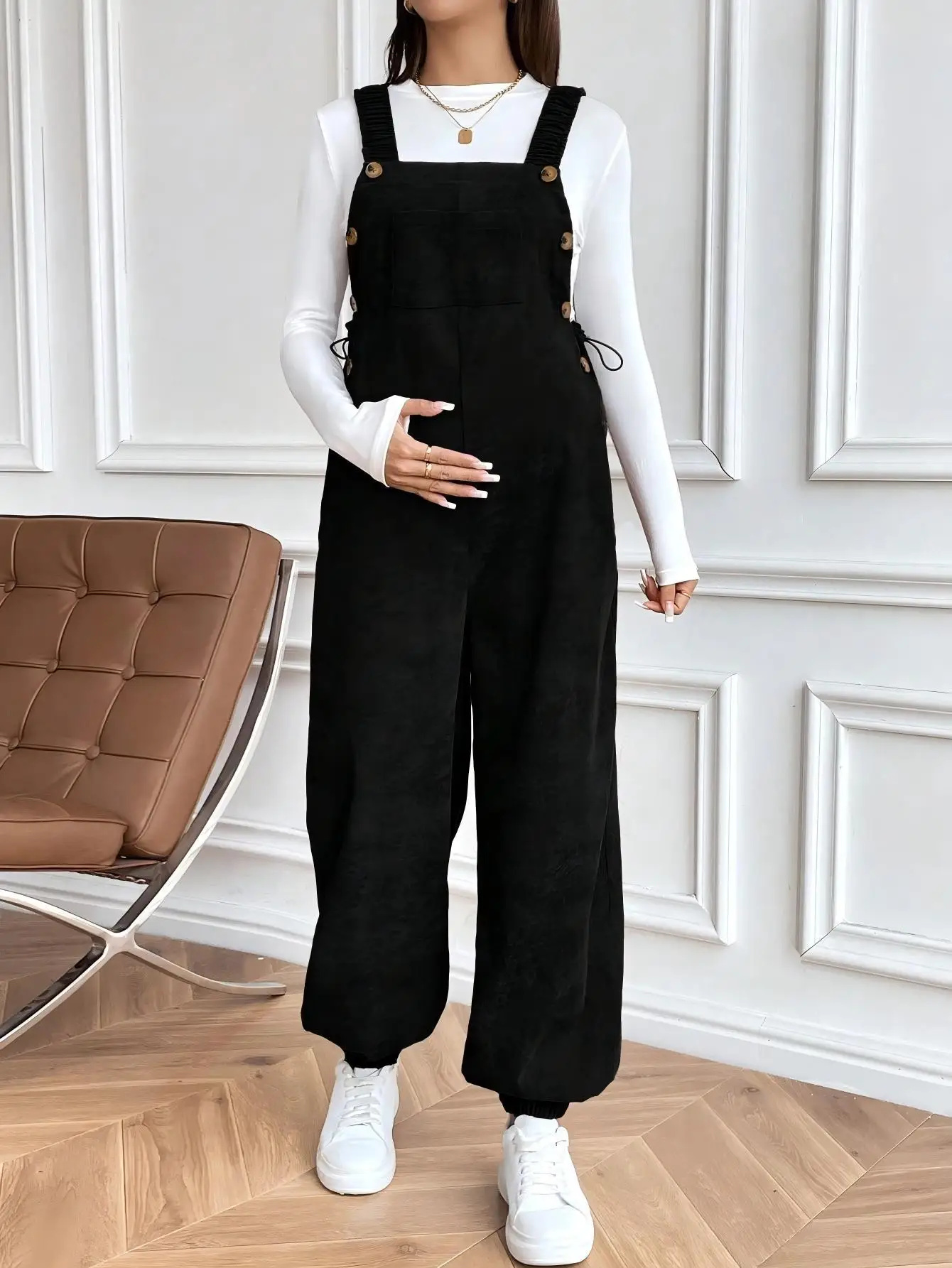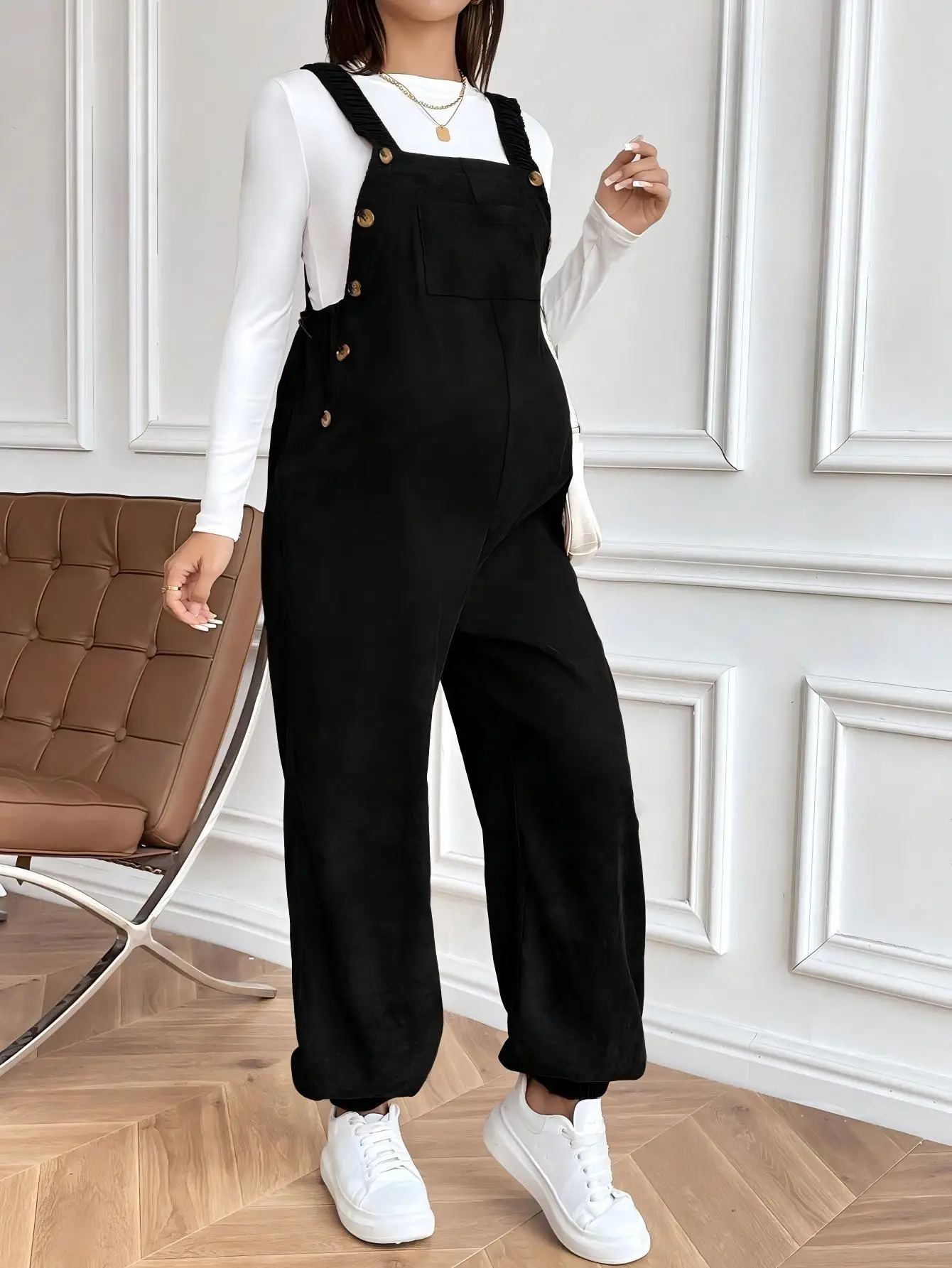 Maternity Clothes Bib Pant Suspender Trousers Loose Casual Pregnant Women Solid Warm Rompers Overalls Wide-Leg Jumpsuit Pus Size