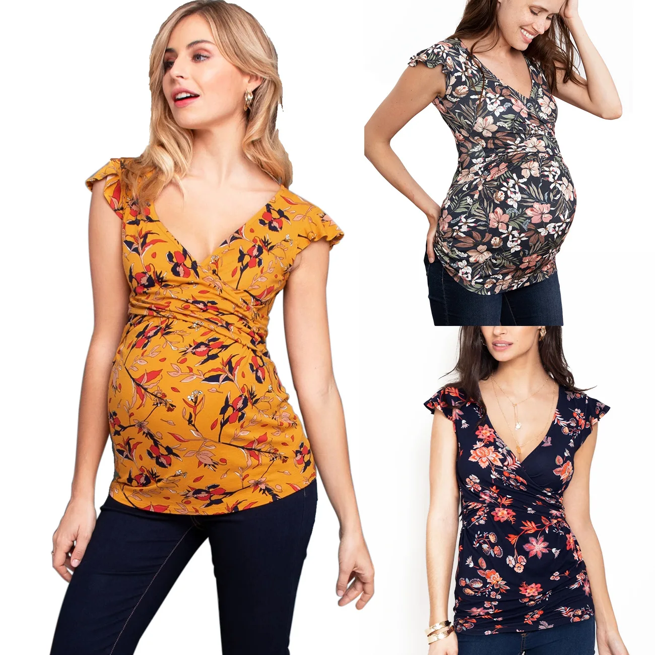 Maternity Clothes For Women Breastfeeding Clothing Short Sleeve T-Shirt Striped V-Neck Pregnant Women's Nursing Tops