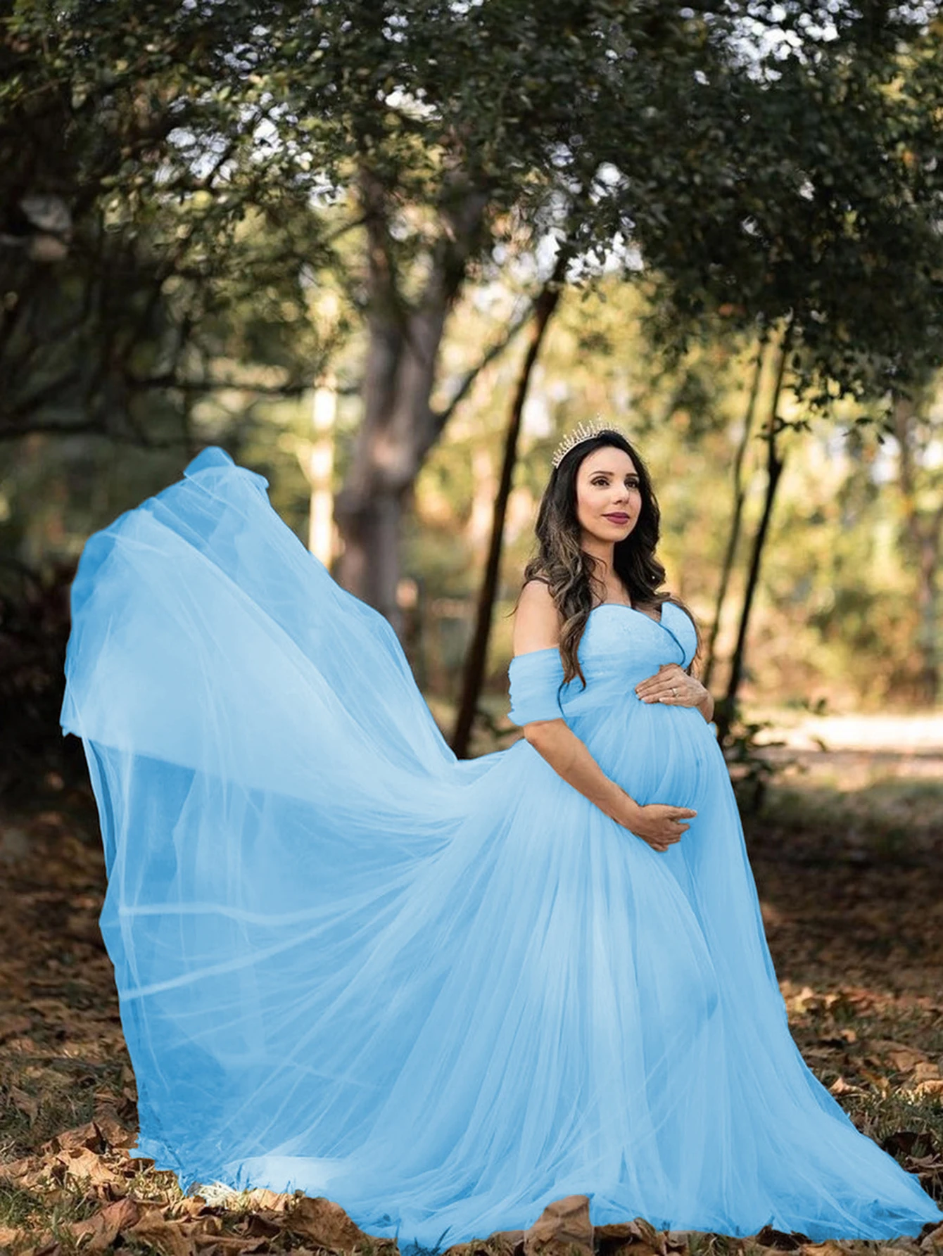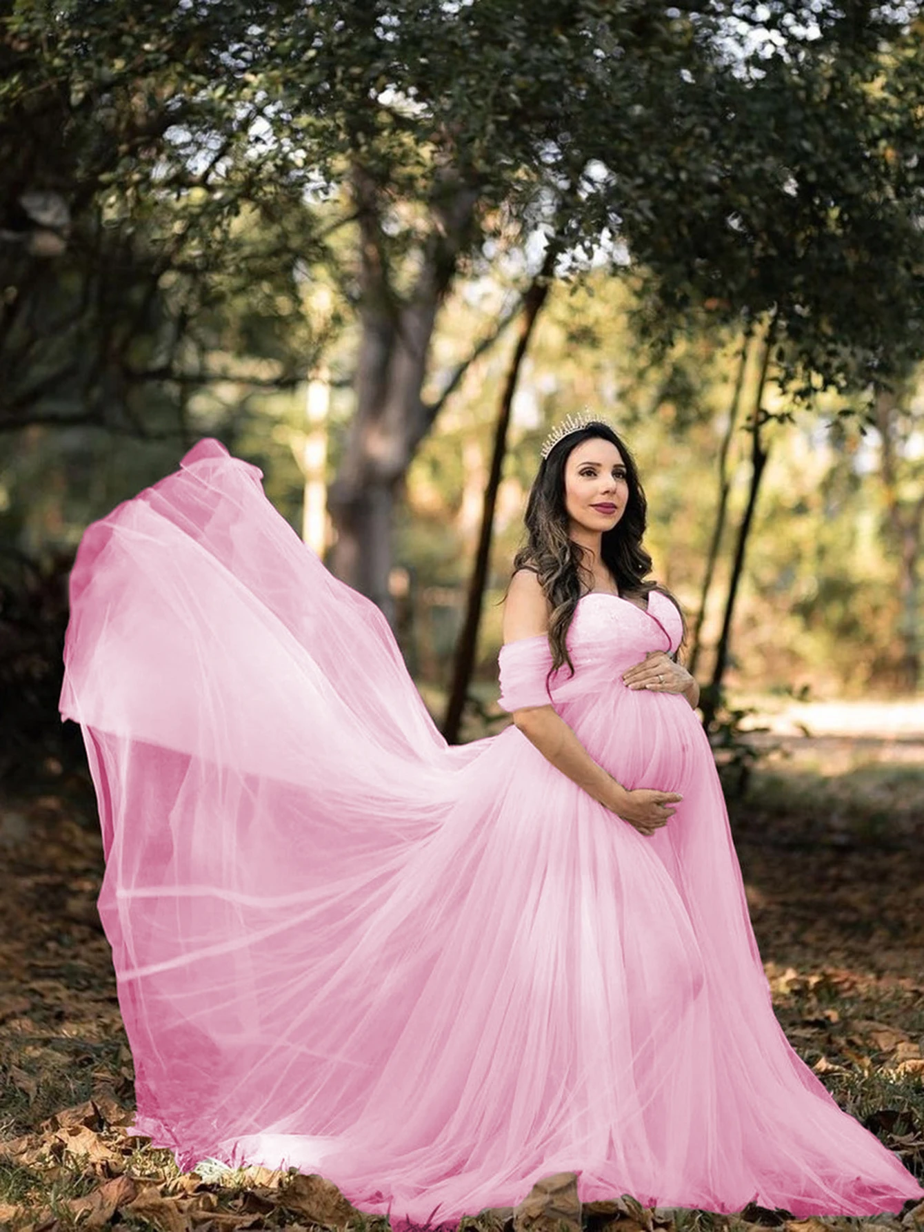Material: Tulle and Polyester, this maternity maxi dress is made of delicate tulle and durable polyester, which is comfortable and durable.