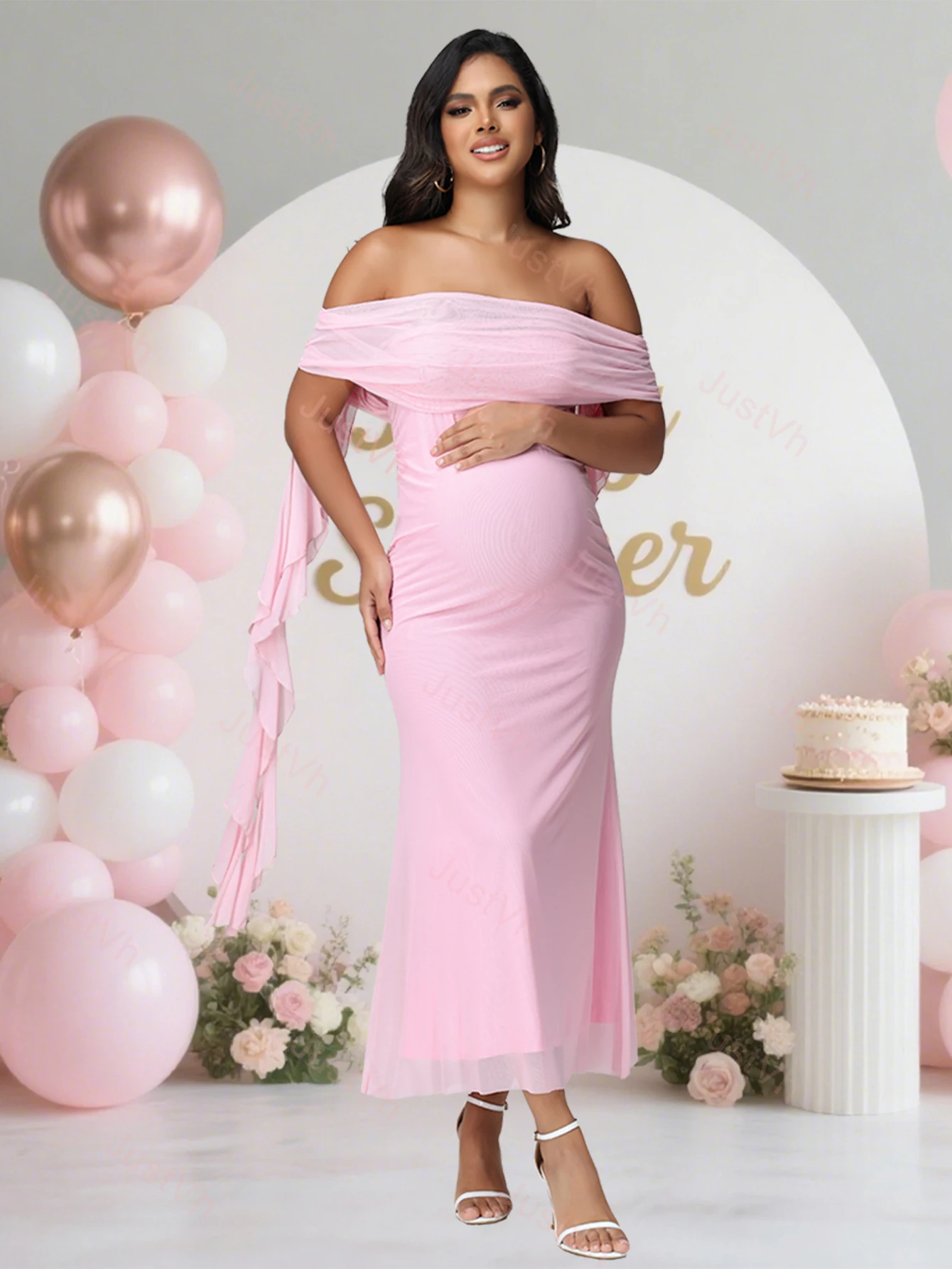 ❤Feature: Pregnancy Photography Props Dress, Formal Maternity Wedding Guest Dress, Elegant Pregnancy Dress for Women, Maternity Dress for Photoshoot, Ruched Waist, Maternity Long Dress, Sleeveless, Off Shoulder, Baby Shower Dress, Exquisite Strapless, Backless, Mesh and Lining, Ruffle Drape, Elegant, Gorgeous, Charming.
