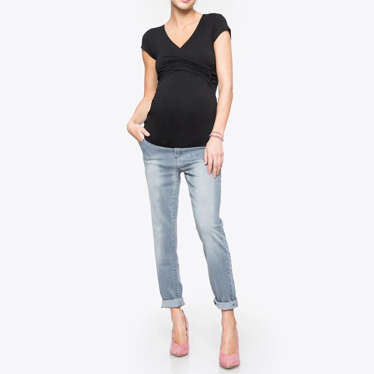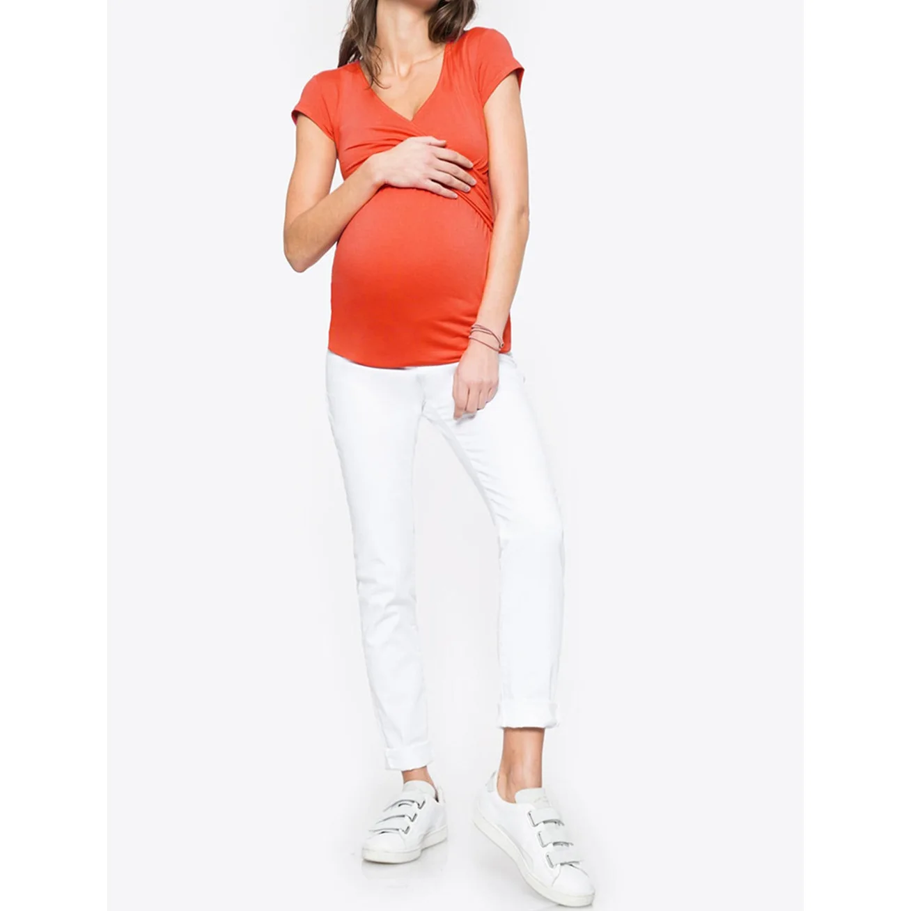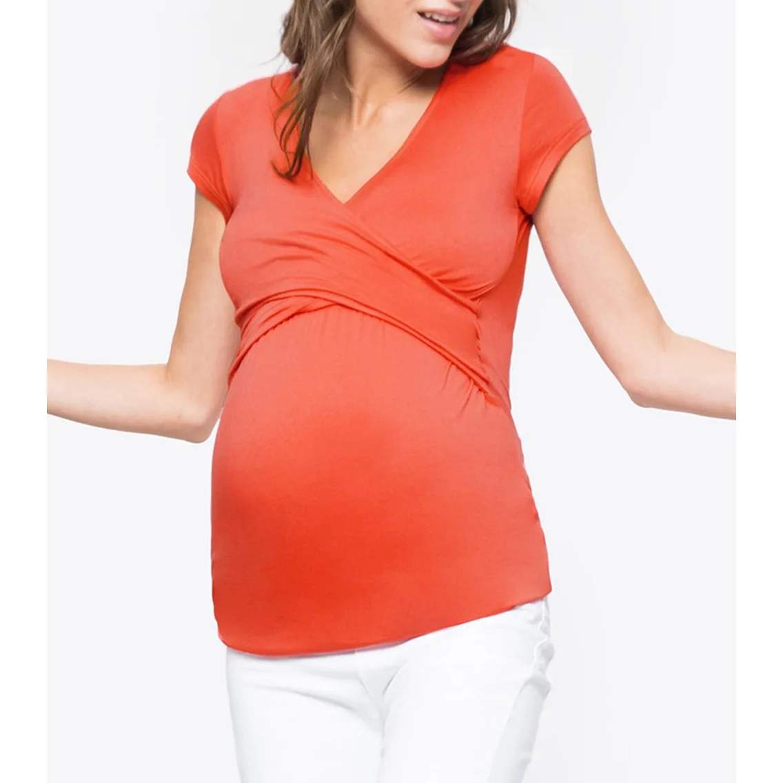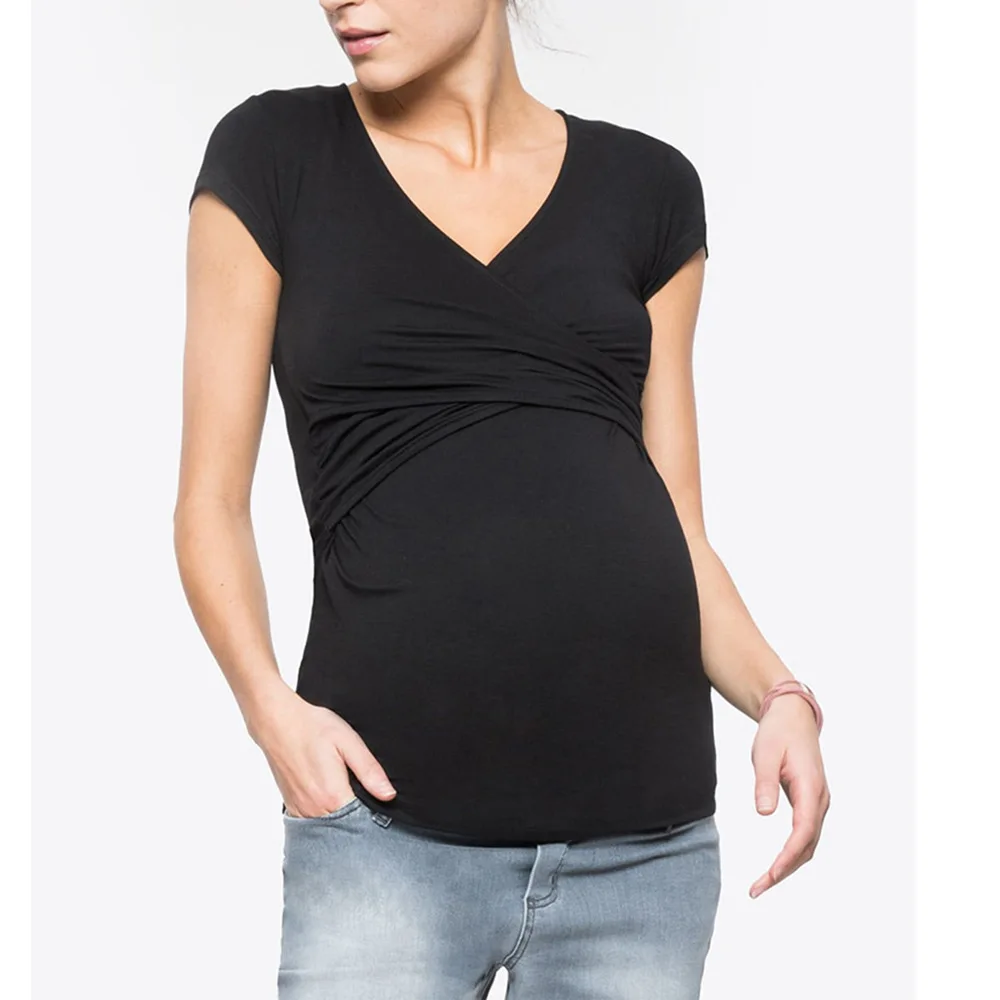 - Casual Solid Short Sleeve O Neck Pregnancy Tees Tops