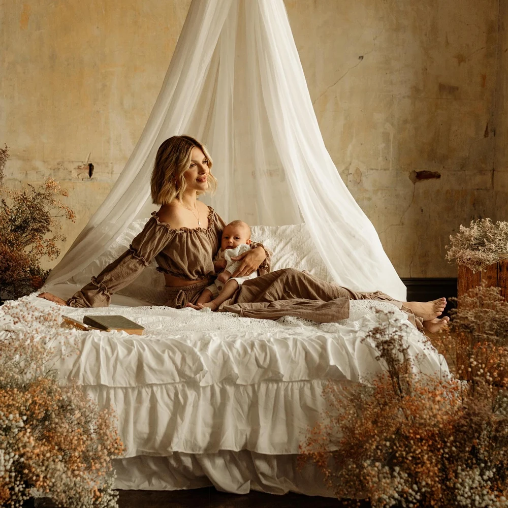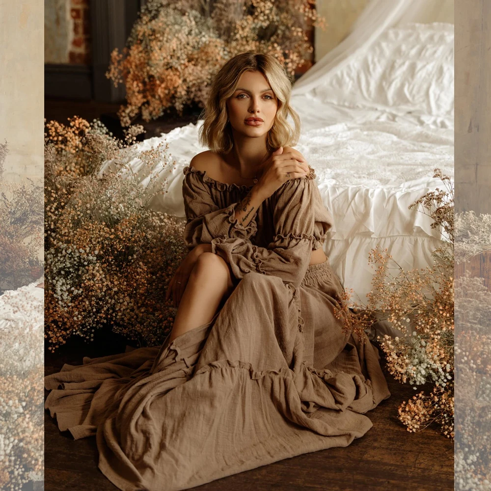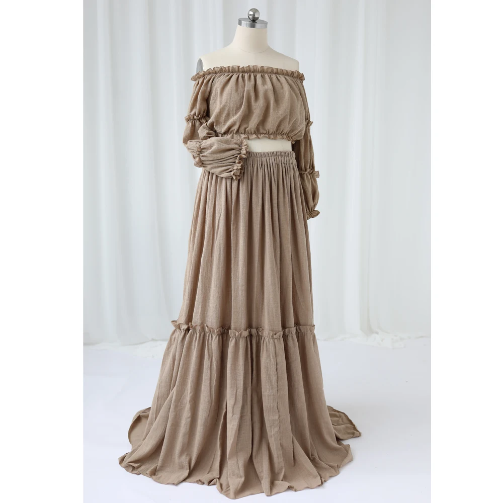 Maternity Photography Dress Comfortable Linen Cotton One Shoulder Two-Piece Set Bohemian Photo Shooting Pregnancy Dress