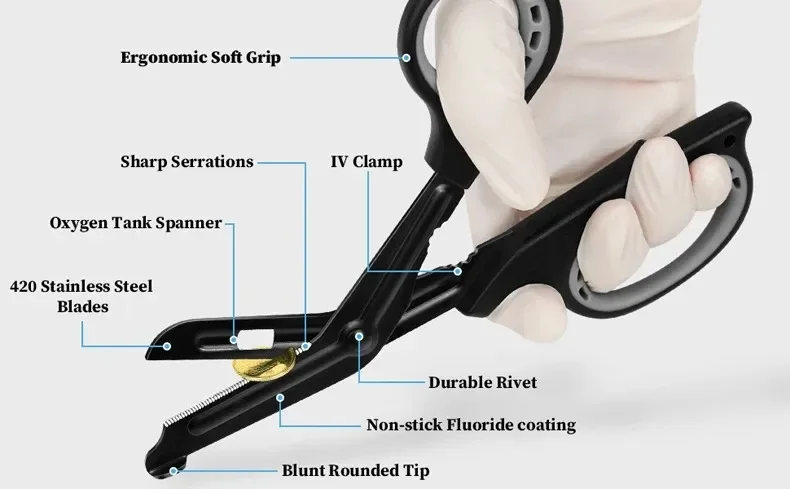 【Professional Medical Trauma Shears】Safety scissors are designed with a blunt tip to prevent secondary injuries.The non-stick fluoropolymer coating on the surface is corrosion-resistant and can withstand high-pressure sterilization up to 290 ℉/143 ℃.
