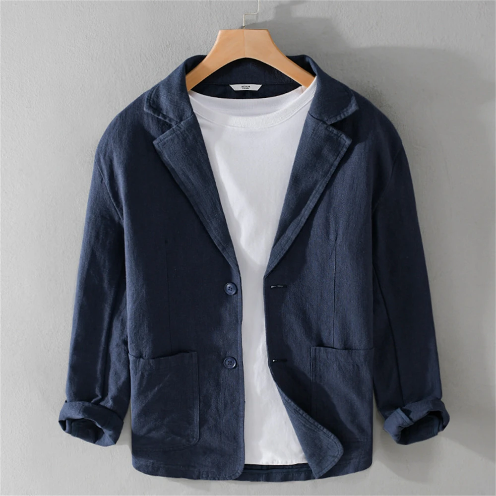 men's Blazers Linen and Cotton Casual men clothing fashion 2024 Spring Autumn Solid Tops for Young men loose Suit Coat