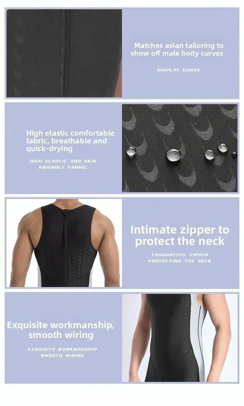 Men'S Sleeveless Competitive Swimwear Durable Waterproof One Piece Racing Swimsuit For Professional Training Competition