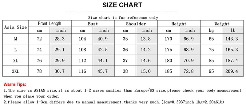 size_info: {"sizeInfoList":[{"length":{"cm":"72","inch":"28.35"},"size":"M","vid":-1},{"length":{"cm":"74","inch":"29.13"},"size":"L","vid":-2},{"length":{"cm":"76","inch":"29.92"},"size":"XL","vid":-3},{"length":{"cm":"78","inch":"30.71"},"size":"XXL","vid":-4}]}