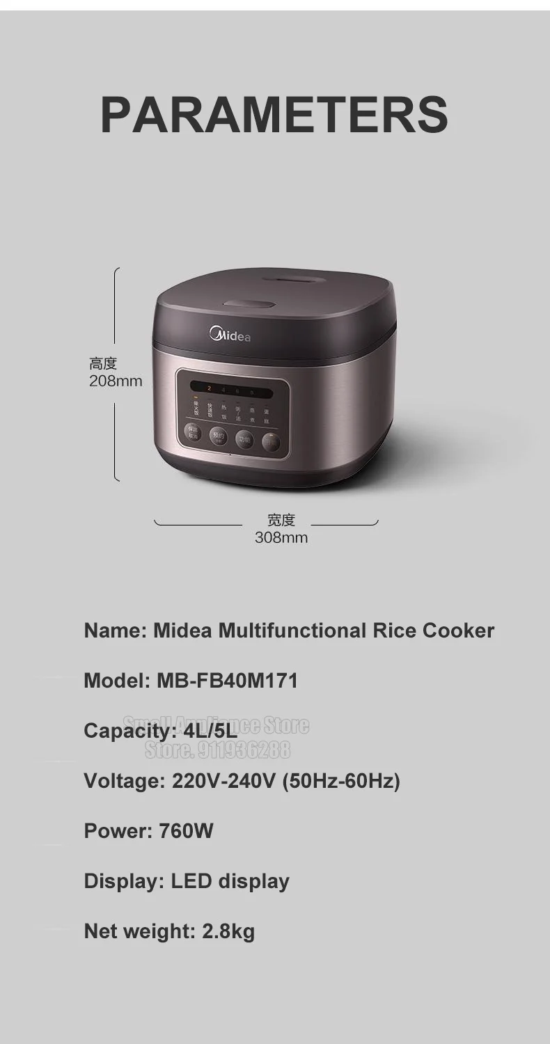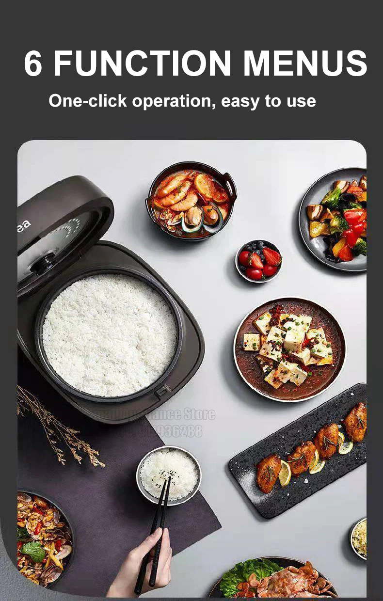 Function: Non-Stick Coating Inner Pot,Claypot Cooked Food,Reservation,Rice Cooking,Cooking & Stewing & Heating,Porridge/Soup,Quick Boiling,Stewing,Reheating,Heat Preservation