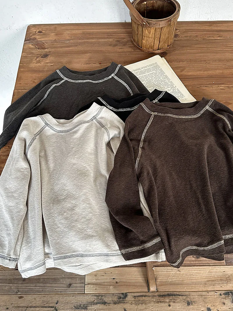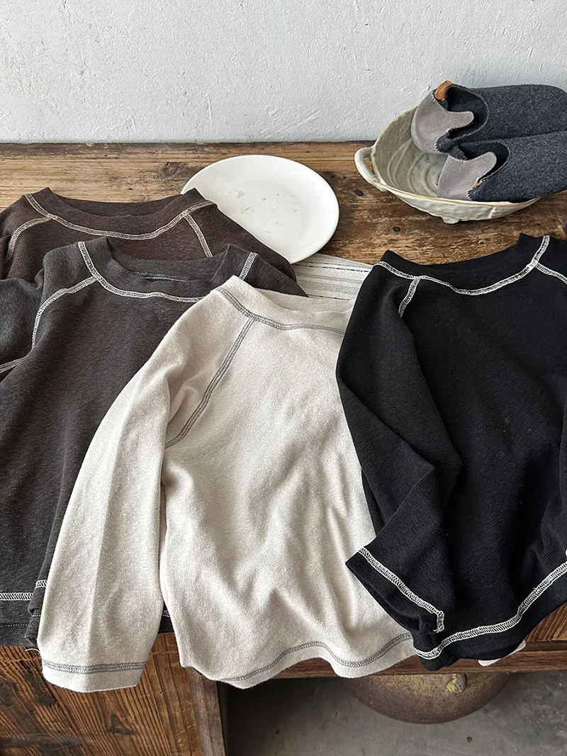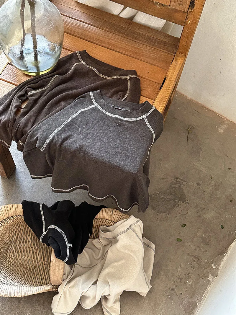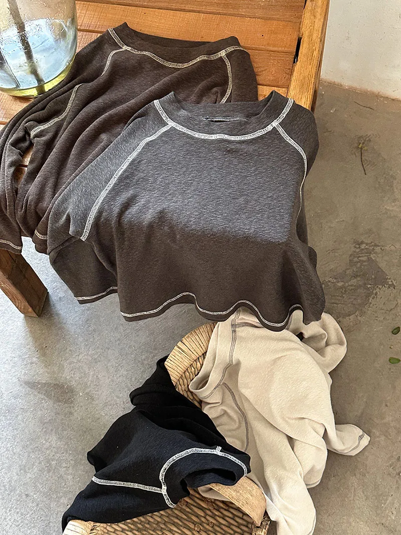 Delicate contrast stitching on the neckline, cuffs, and hem adds **understated elegance**—transforming a basic top into a stylish statement piece.