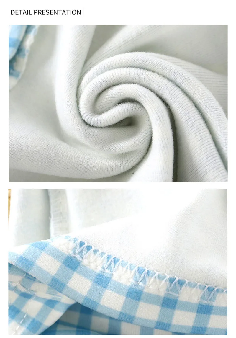 - **Gingham Pattern & Cartoon Patches**: Classic gingham (blue, pink) brings retro charm; cute cartoon patches (bear, cat) add playfulness, fitting “whimsical loungewear” trend for kids’ cozy home looks.