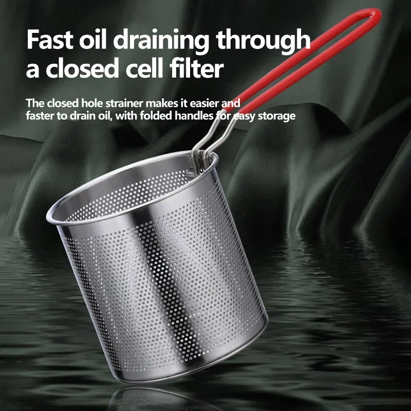 The mini fryer is made of high-quality 304 stainless steel, which is durable, safe and hygienic, wear-resistant and not easy to rust. Suitable for fried chicken legs, dried fish, tempura, French fries, chicken cutlets, etc.