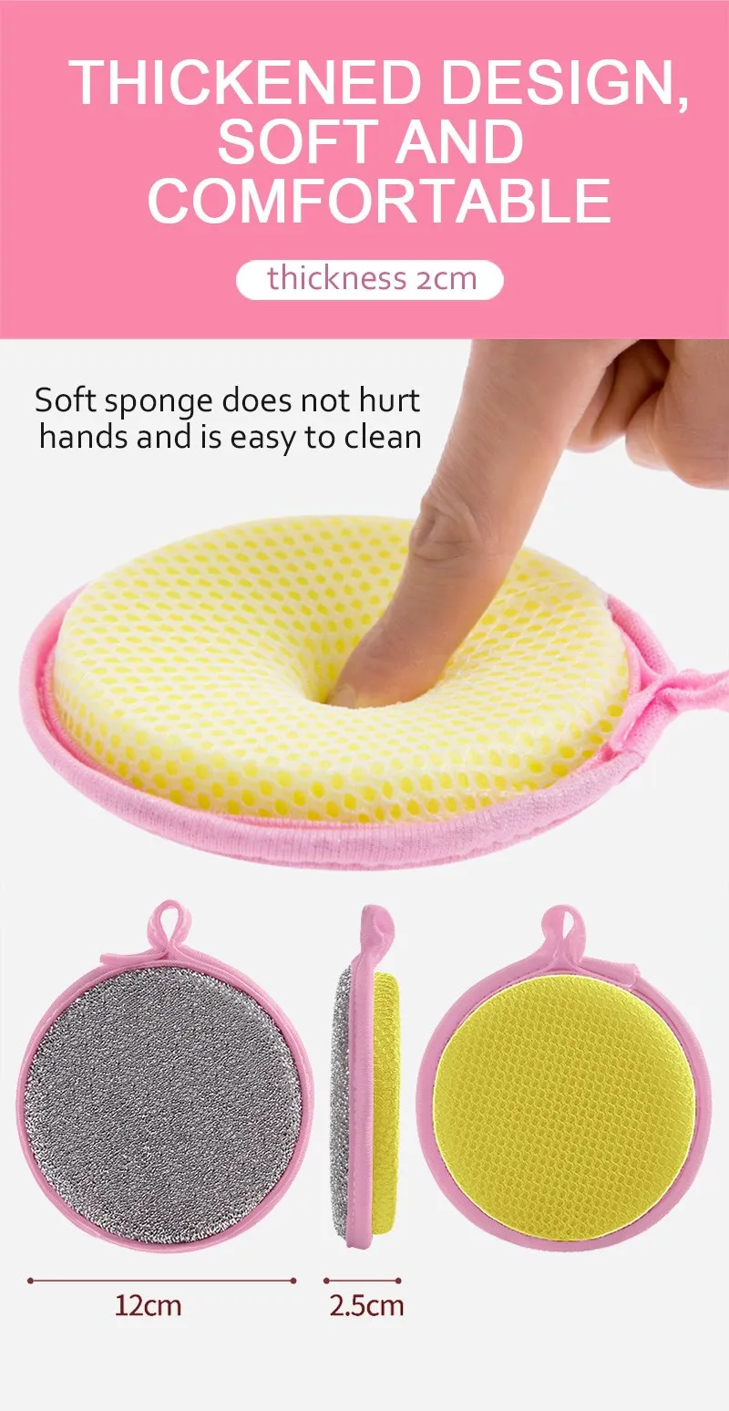 1. Double-sided material, one side is a high-density sponge screen, which is soft and easy to foam; the other side is nylon yarn, which is a little harder, and powerfully removes stubborn stains.