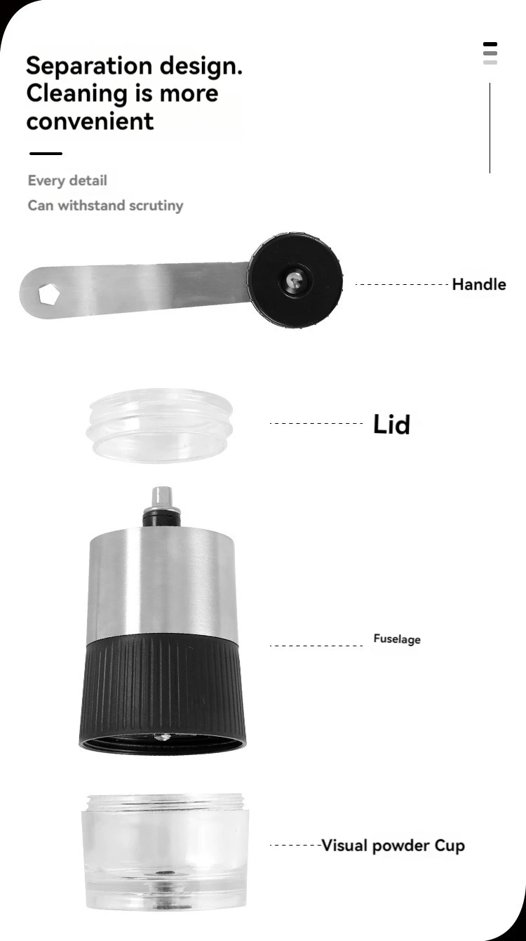 *Easy to Operate: Remove the handle and open the lid for easy loading. Grind coffee beans and store fresh ground coffee with the extra lid. Perfect size for travel, camping or hiking.*Excellent Material: The manual coffee grinder made of high-quality material provides a unique and appealing flavor while grinding. It does not generate heat during the grinding process, nor does it evaporate the aroma of coffee beans.