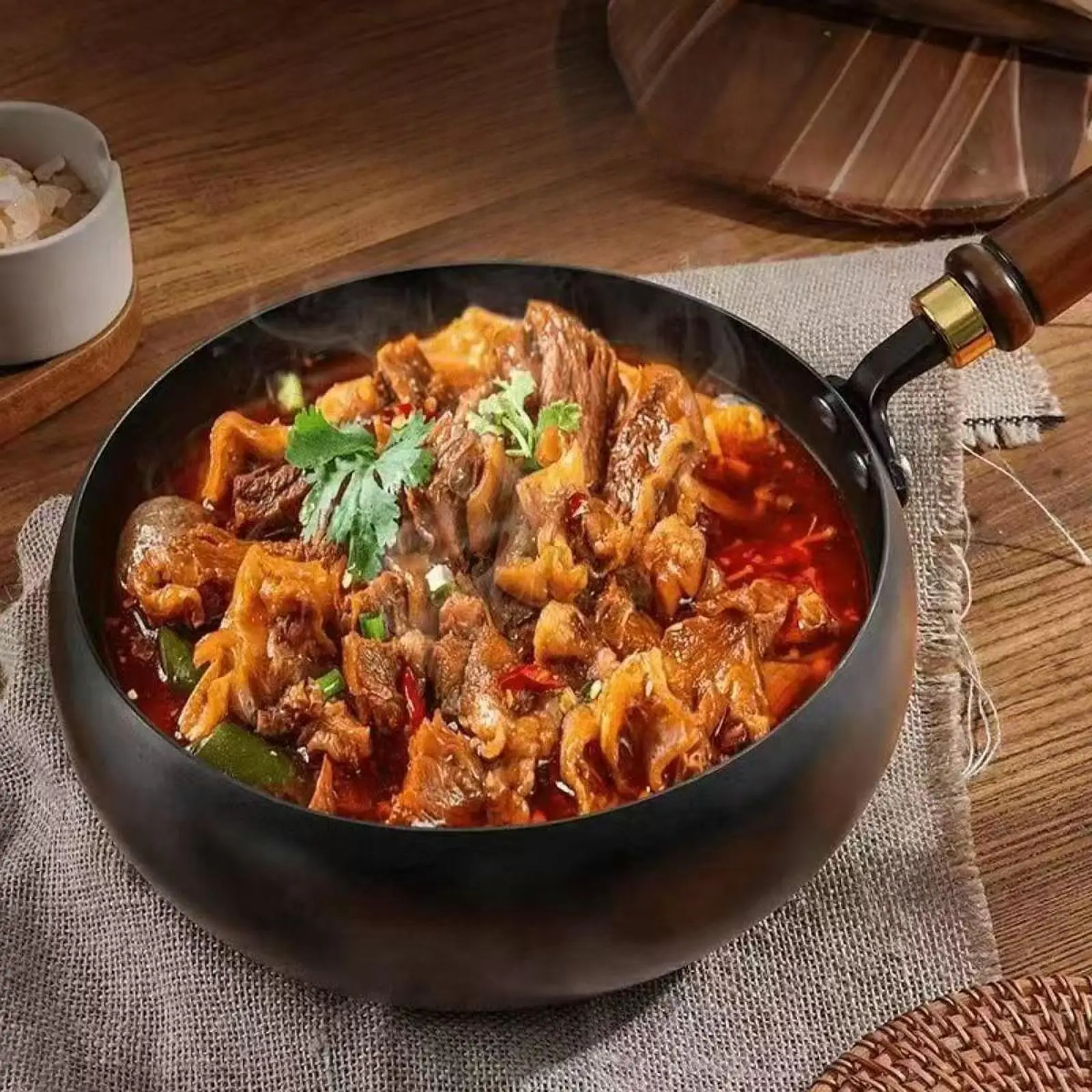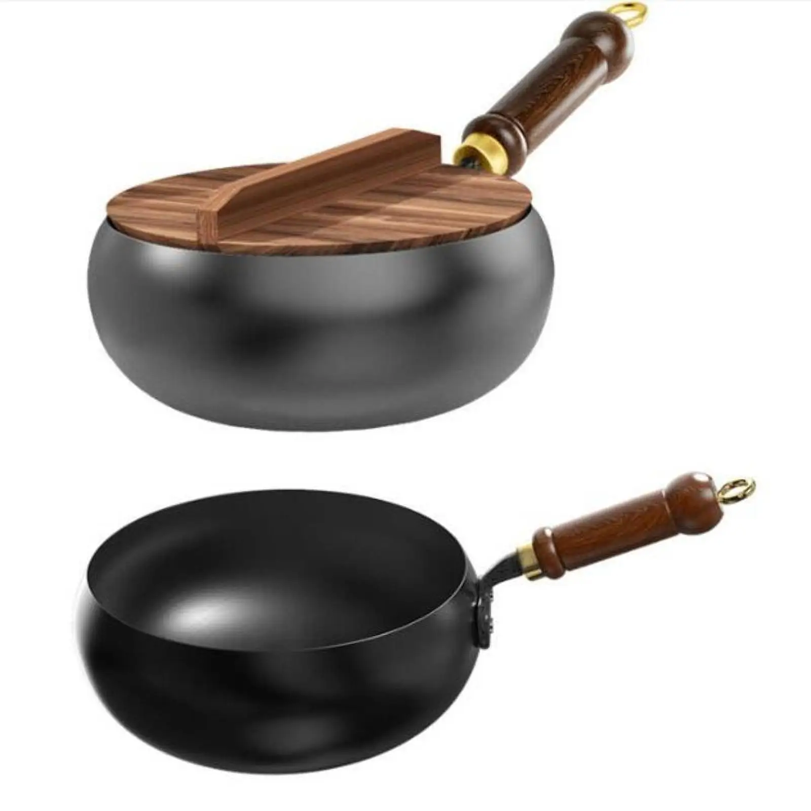 MainKey3: nonstick frying pan Iron Wok with wood handle