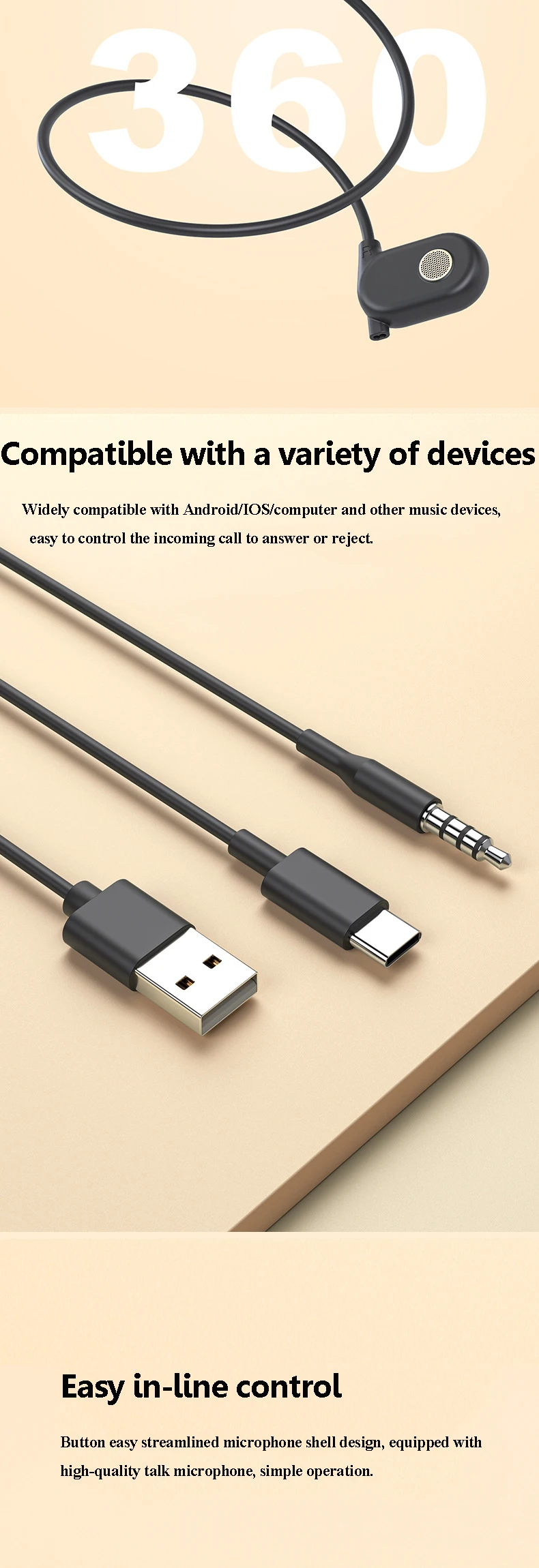 Headphones by port: 3.5mm/TYPEC/USB
