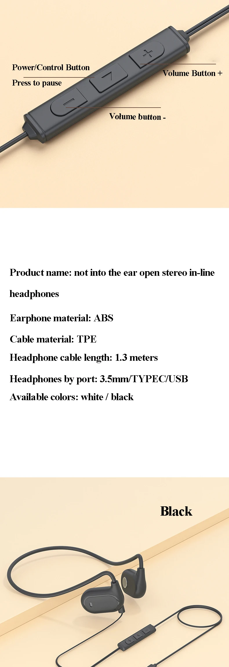Product name: not into the ear open stereo in-line headphones