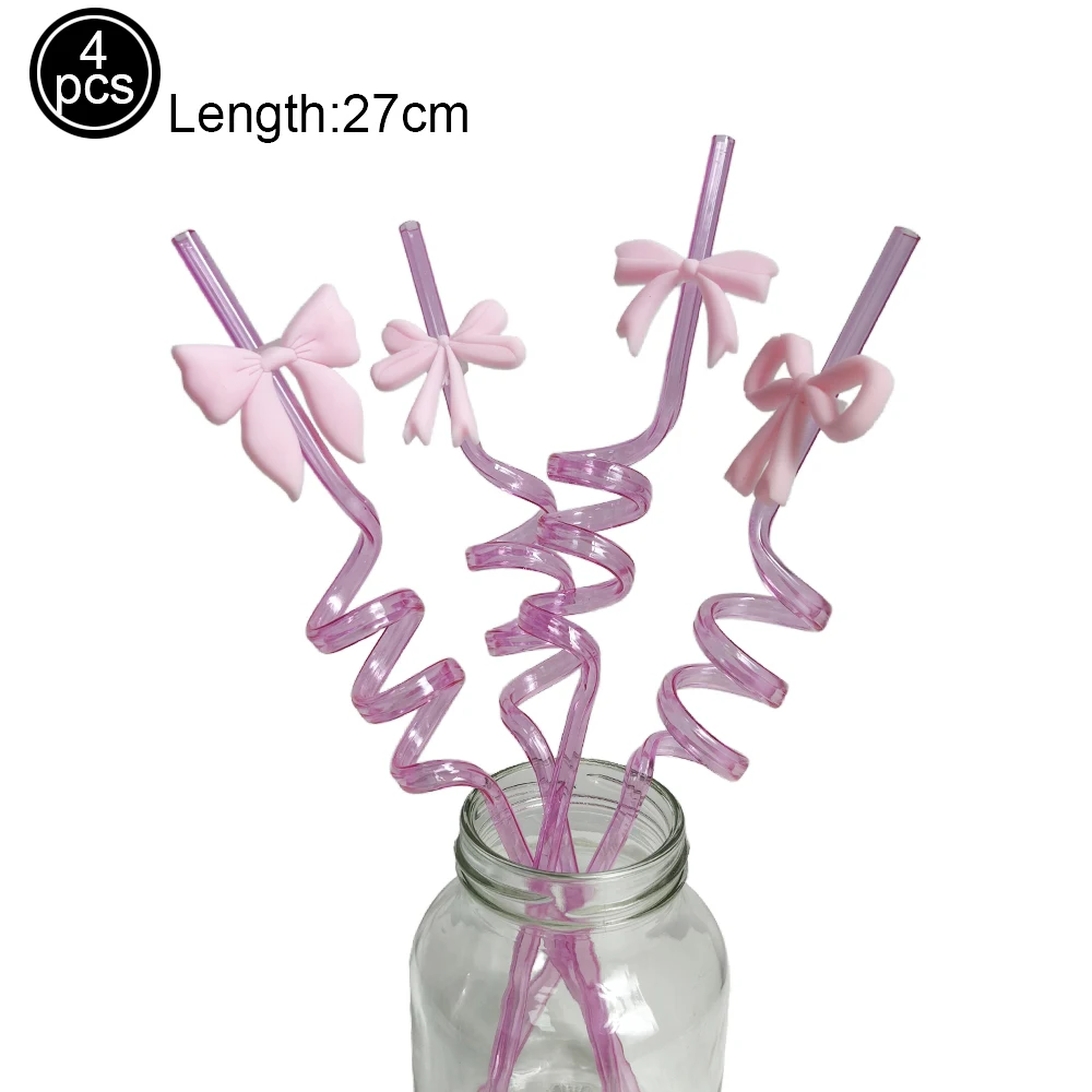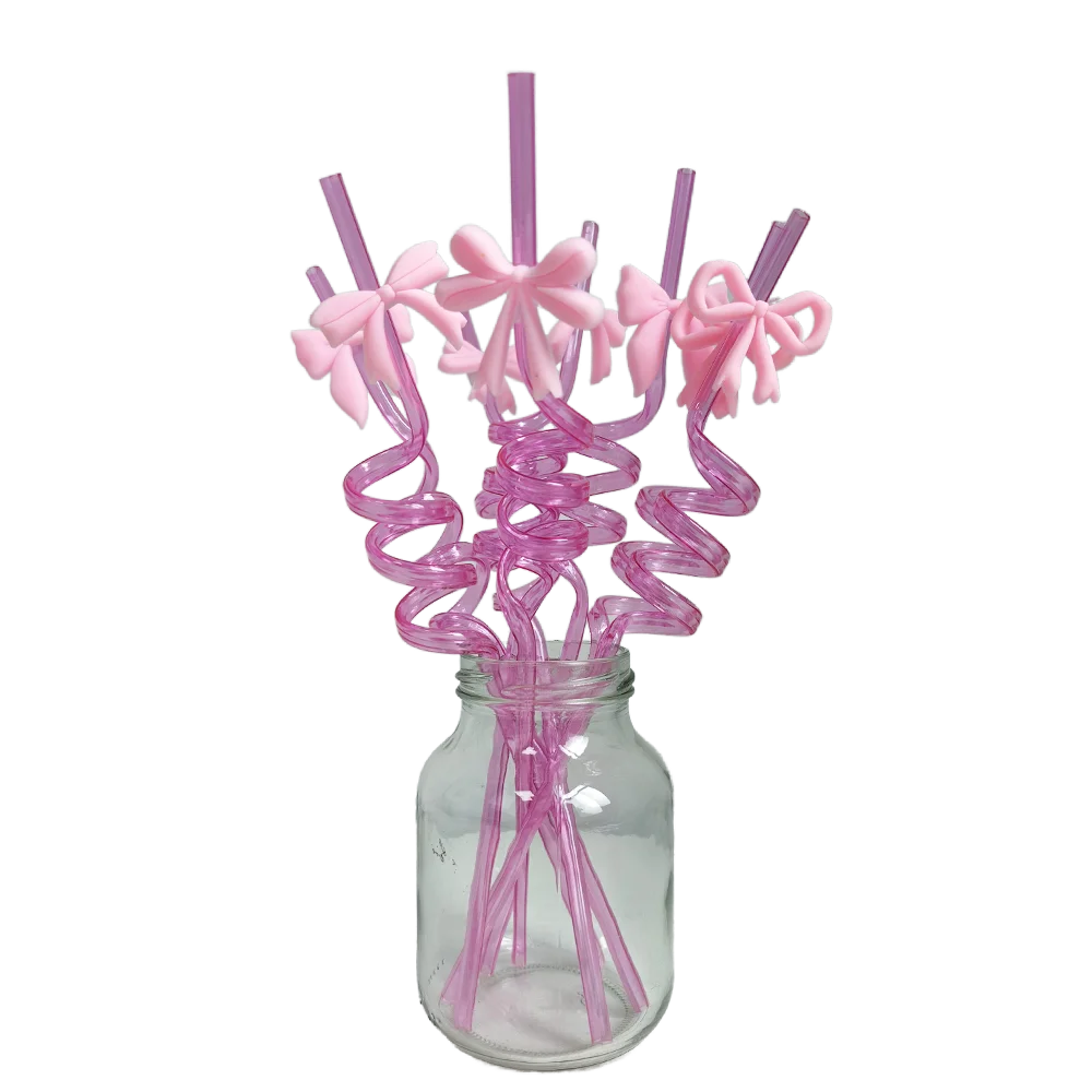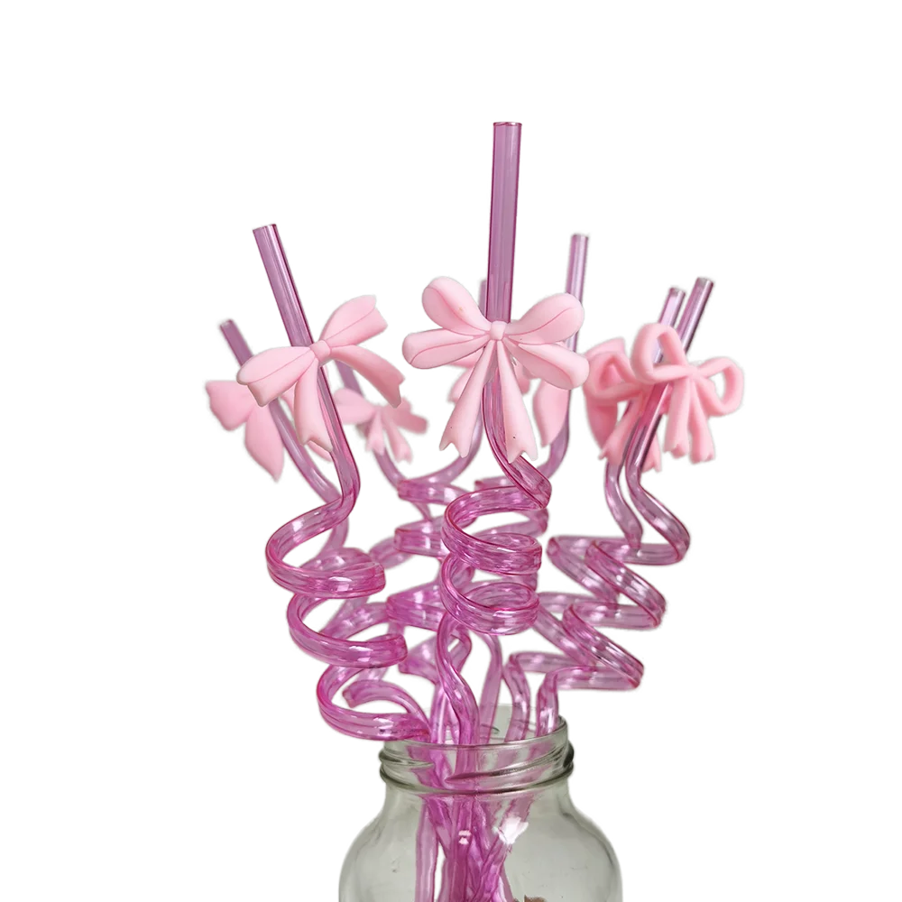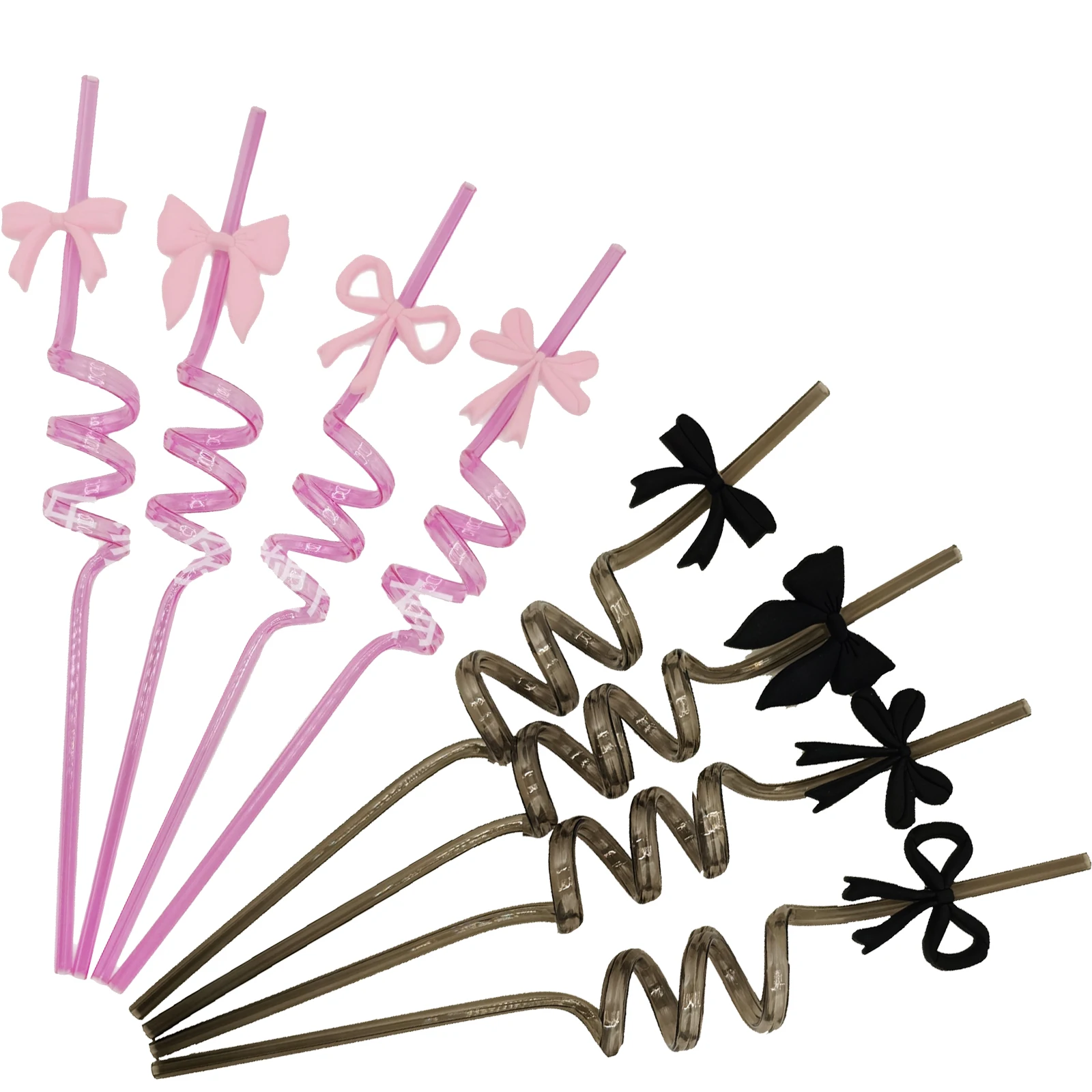 Pink and Black Reusable Plastic Straws for Kids Girls Pretty Bachelorette Bridal Engagement Bow Theme Birthday Party Decorations