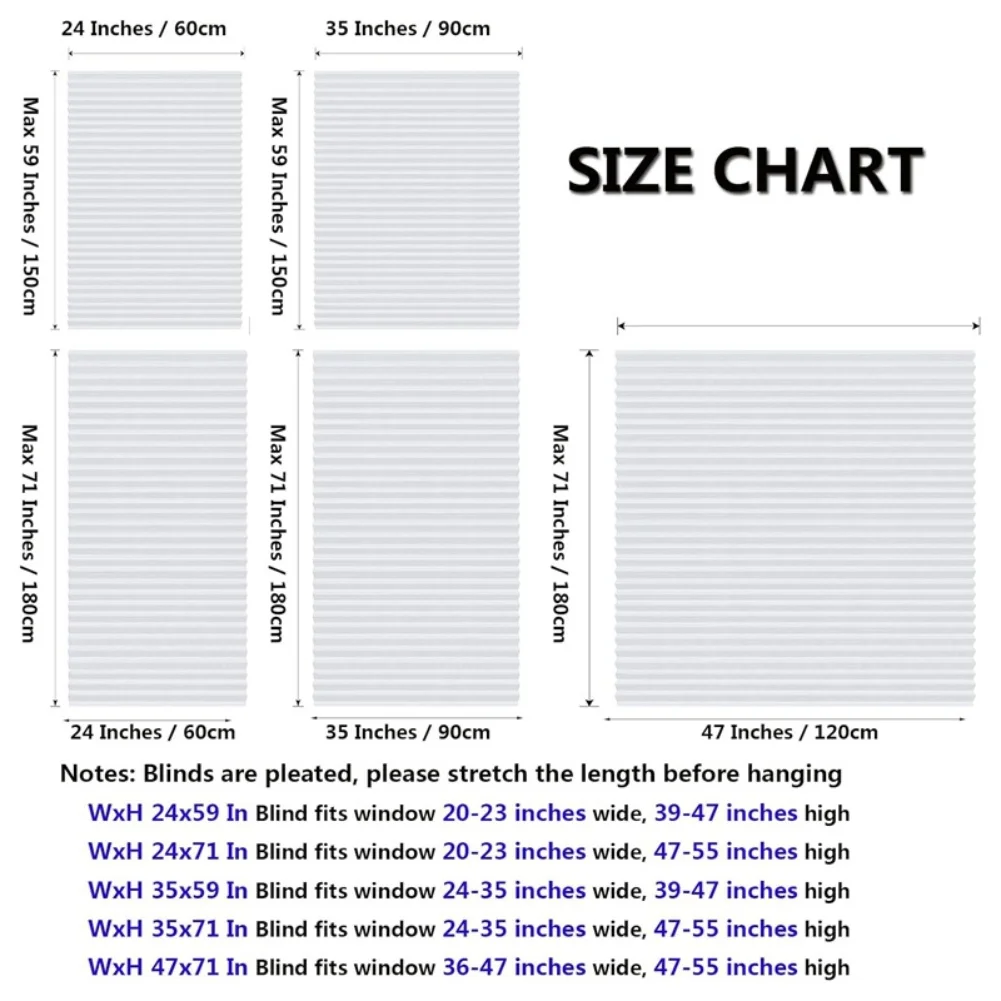 *Variety of Sizes: Available in multiple sizes, these pleated blinds are designed to cater to different window heights, make sure you select the appropriate length for optimal coverage and functionality.