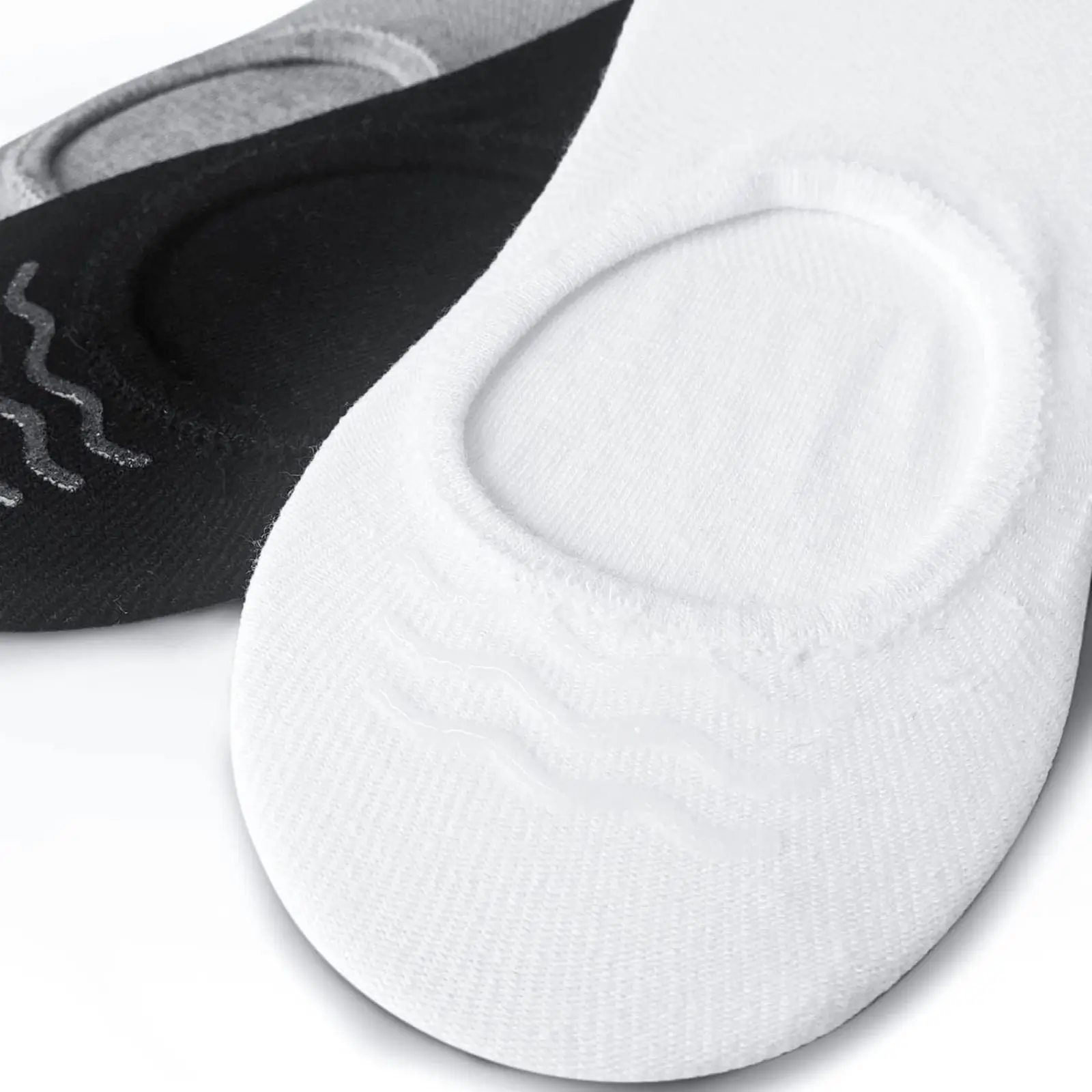 DESIGN: No show socks have three non-slip grips on the inside of the heel, helps hold the sock in place, prevents slipping