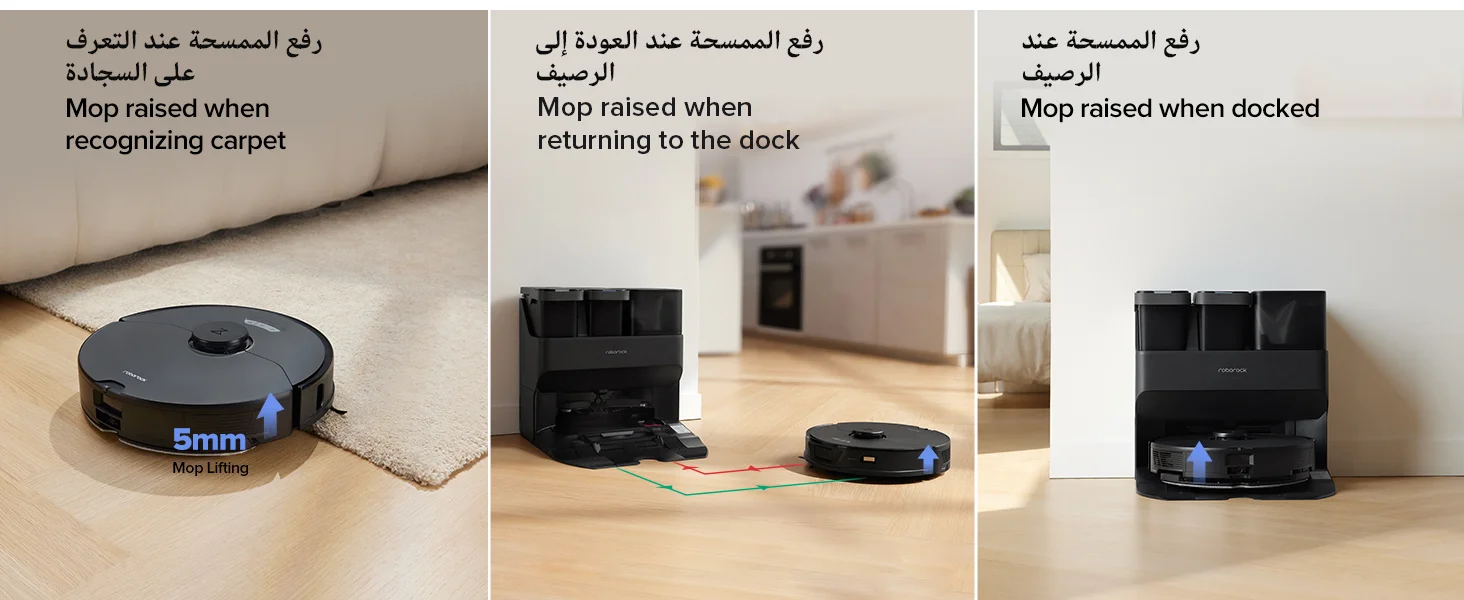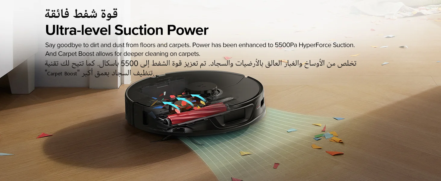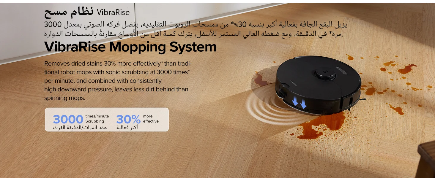 S7 MAX ultra robot vacuum has 5500Pa suction and ultrasonic mopping system, 3000 times/min sonic vibration mopping, constant pressure, effectively disintegrate stubborn stains, and the mop is lifted by 5mm to prevent secondary pollution.