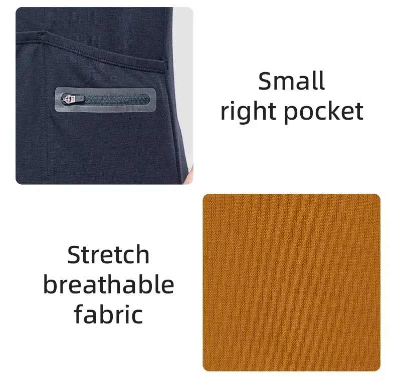 The main body is made of ultra-thin air-layer fabric, with vertical texture, silky skin-friendly, smooth and elastic, good elasticity. The hem is elasticized and equipped with rubber anti-slip tape for stable riding. Pockets on the back, convenient for storing small items.
