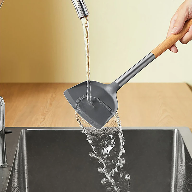 3. Easy to clean: The silicone spatula is very easy to clean, you can just clean it manually with water and soap. At the same time, the anti-stick properties of silicone make it easier to remove food residue.