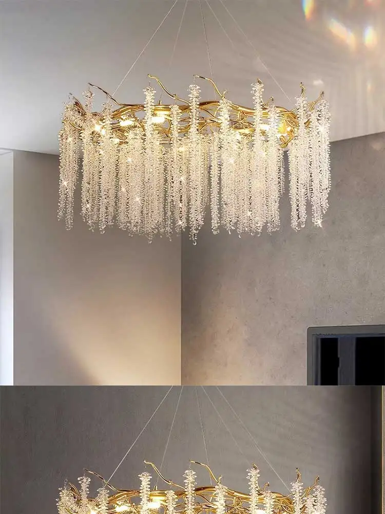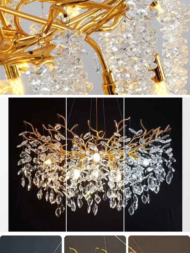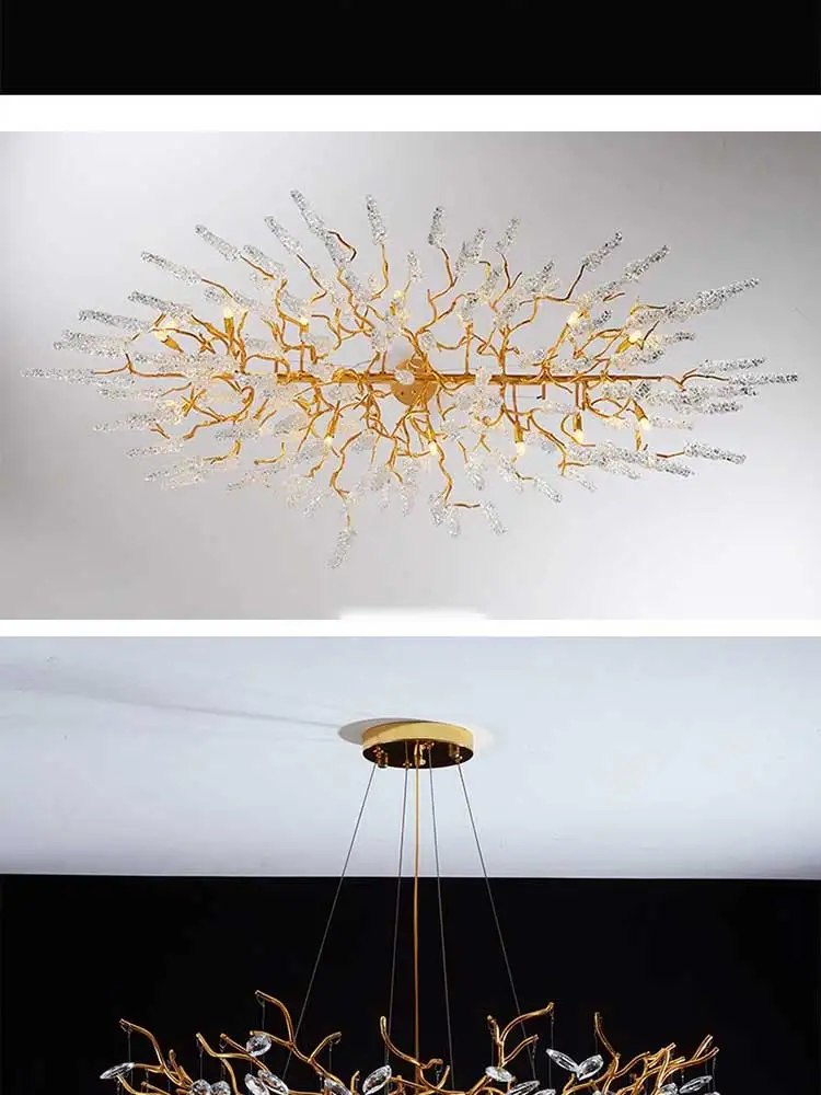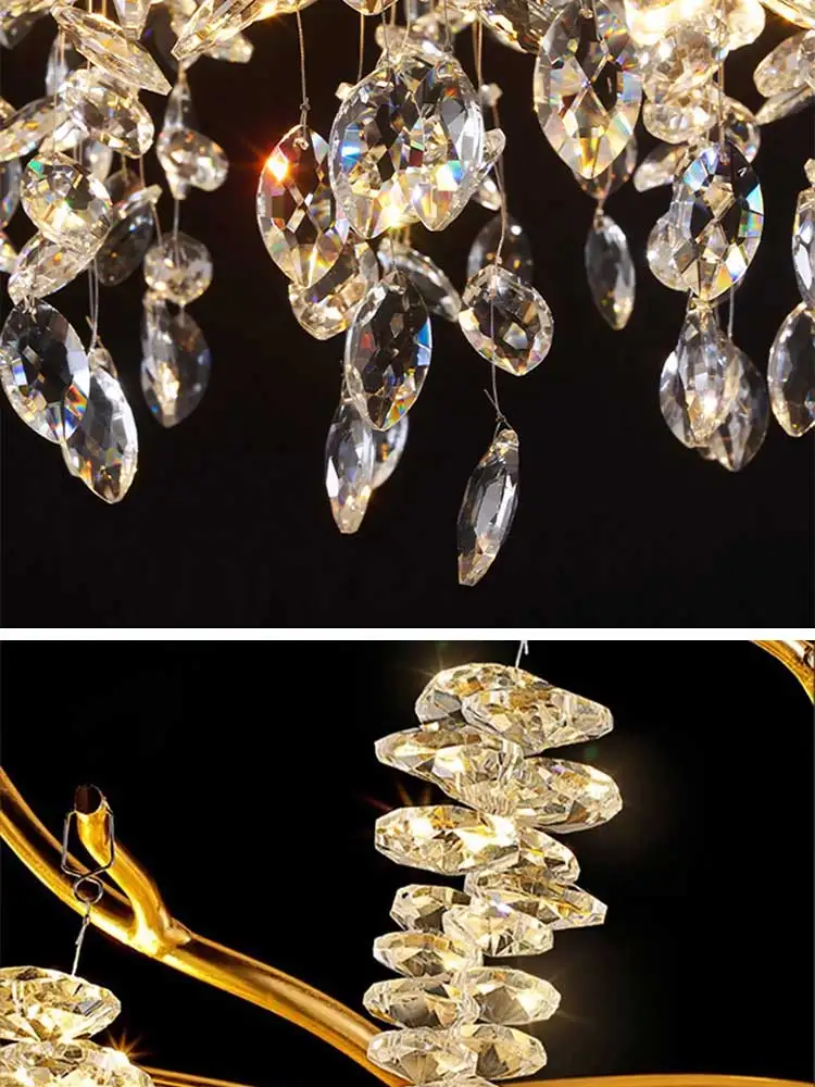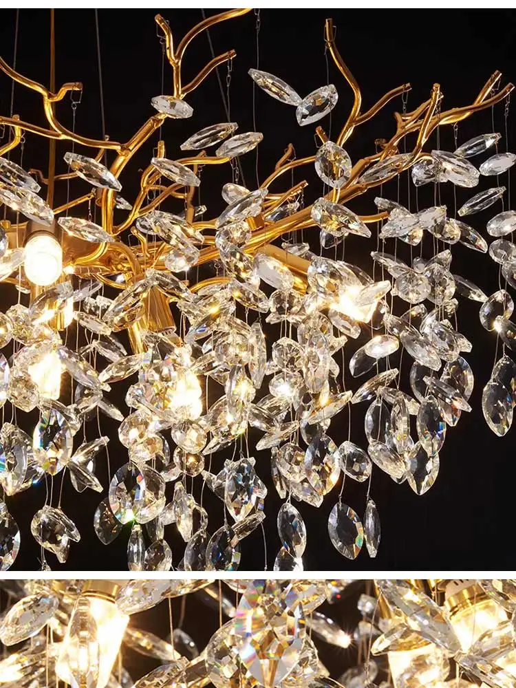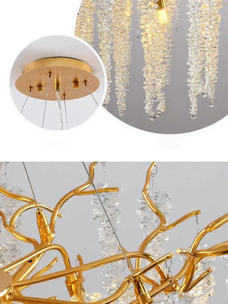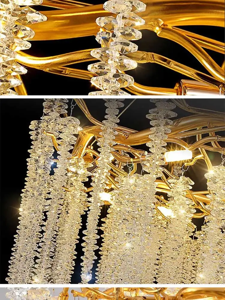 Special Promotions Modern Gold LED Tree branch crystal tassel adjustable chandelier for dining room home decoration,D80/L120cm