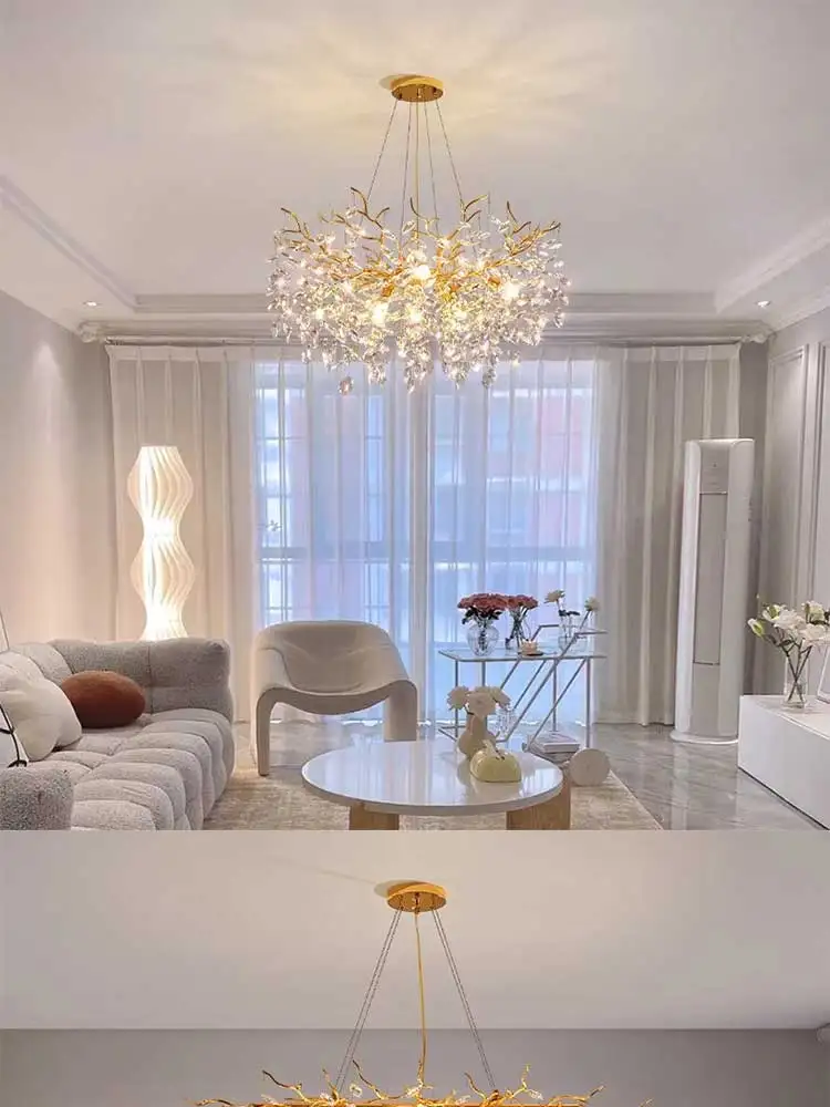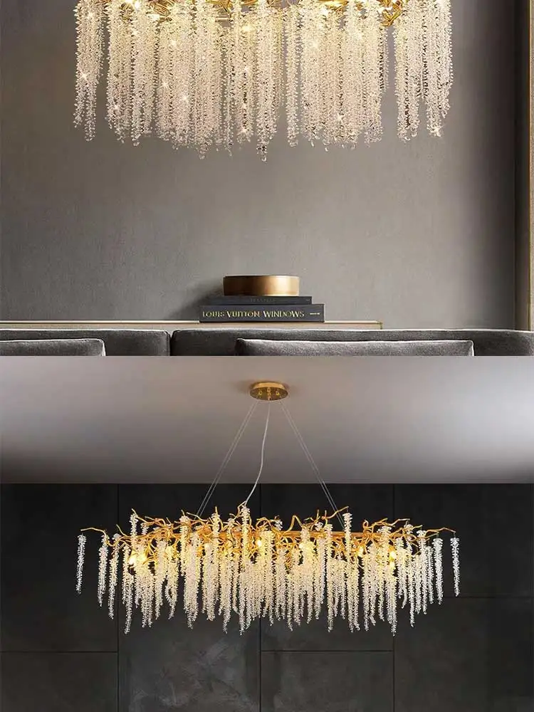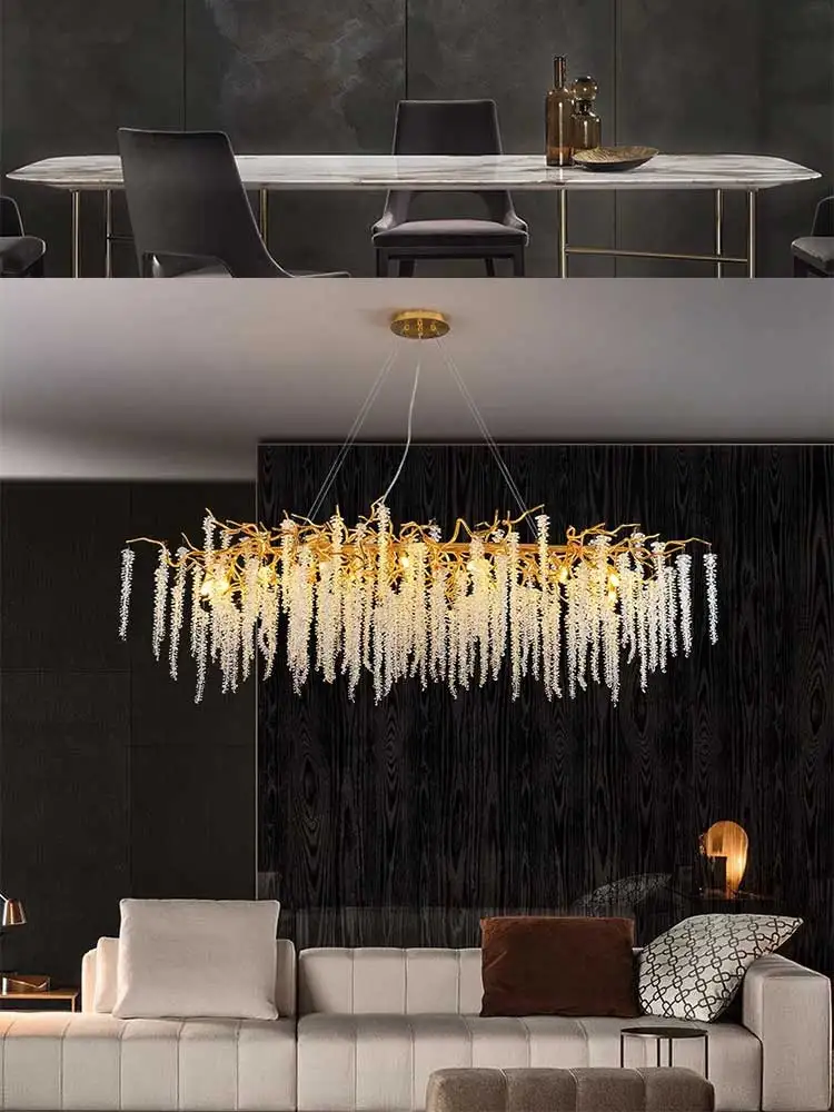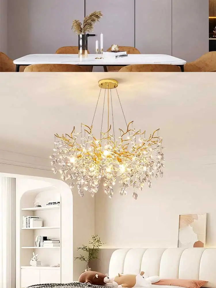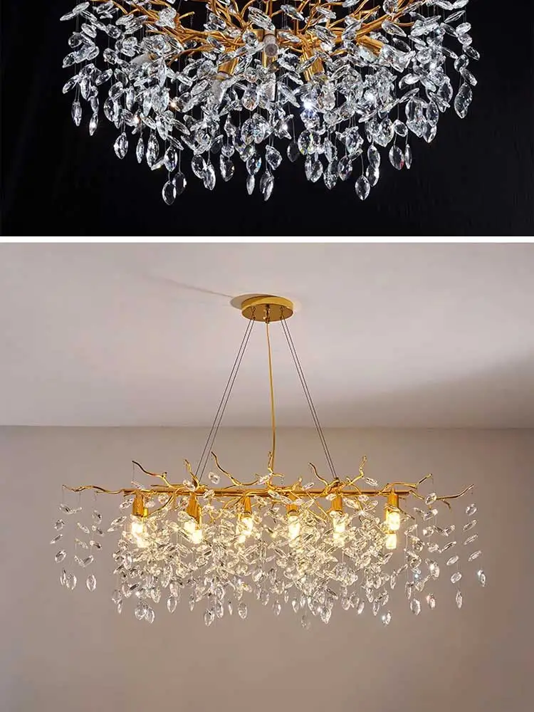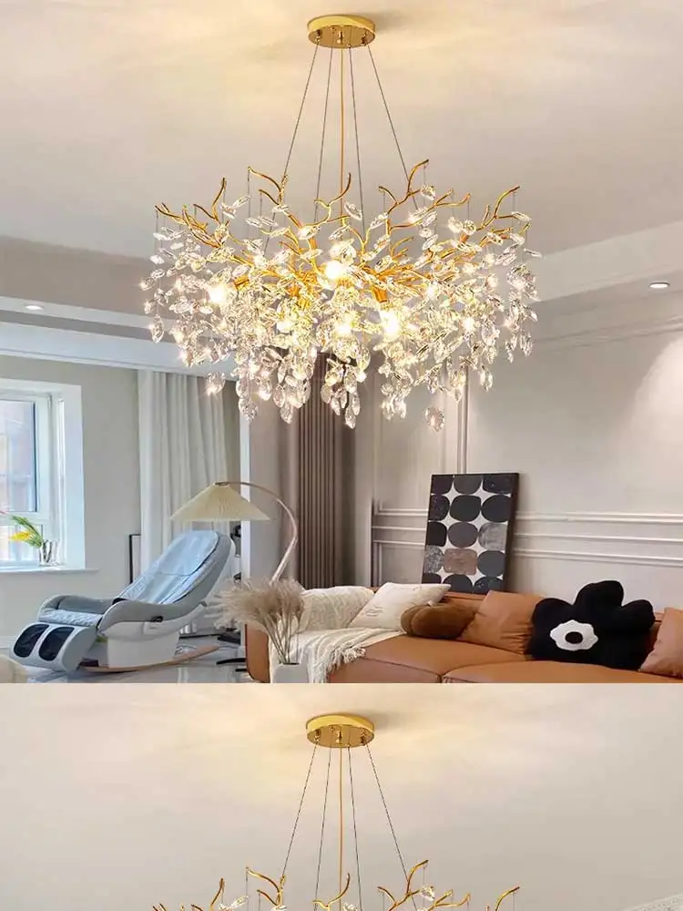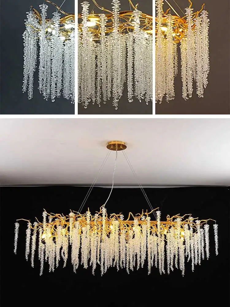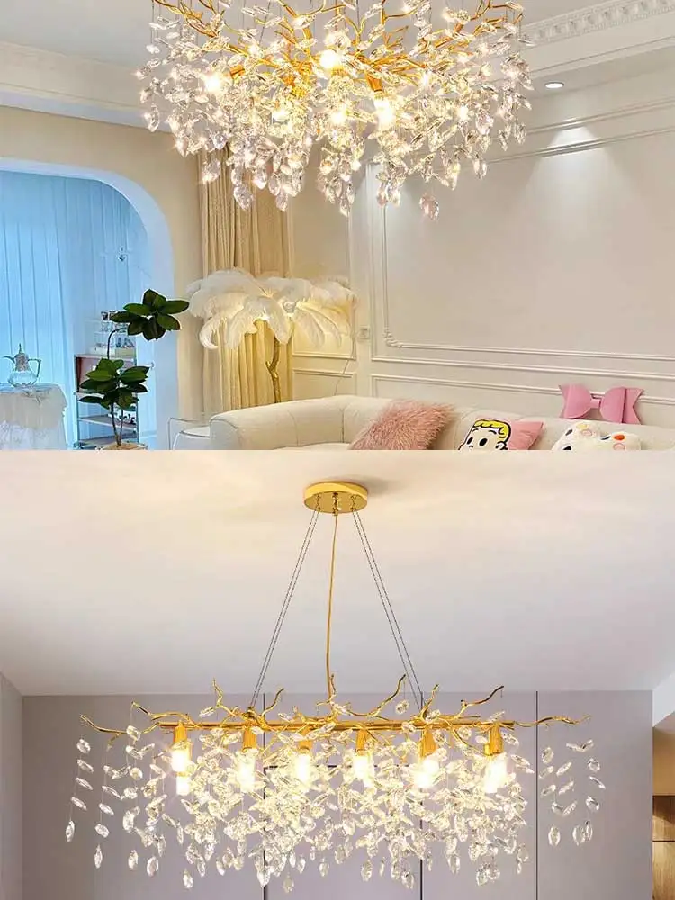 Special Promotions Modern Gold LED Tree branch crystal tassel adjustable chandelier for dining room home decoration,D80/L120cm