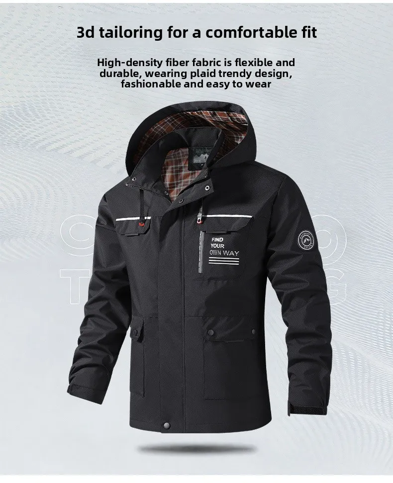 Equipped with multiple pockets, this jacket provides ample storage for your essentials.