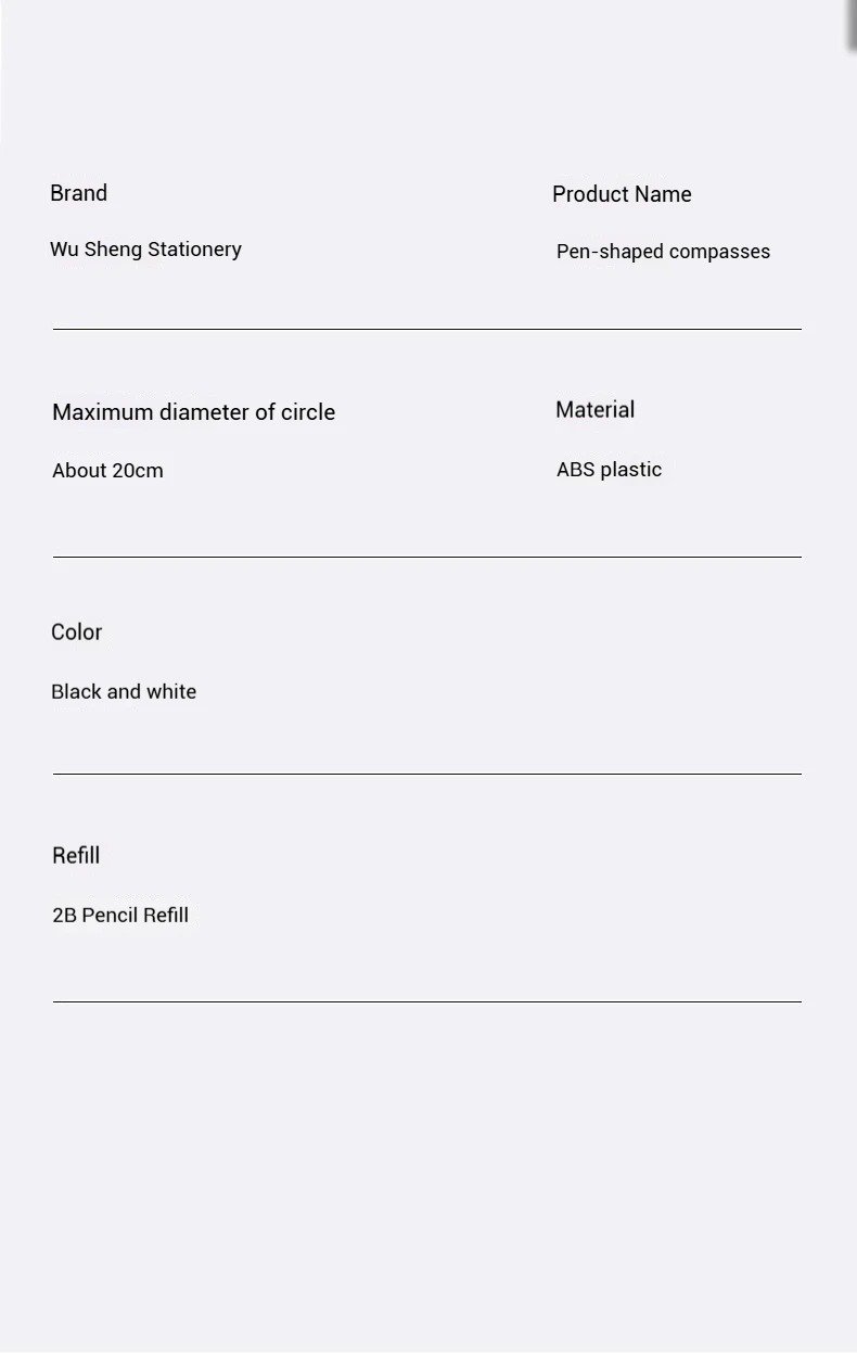 SPECIFICATIONSBrand Name: NoEnName_NullChoice: yesHign-concerned Chemical: NoneMaterial: PlasticModel Number: XP008Origin: Mainland ChinaType: CompassesStudent Compass and Ruler Set, Professional Drawing Tool, Suitable for School an ﷼104.80 Regular Price﷼52.40Sale PriceColor*SelectQuantity*Add to CartBuy Now