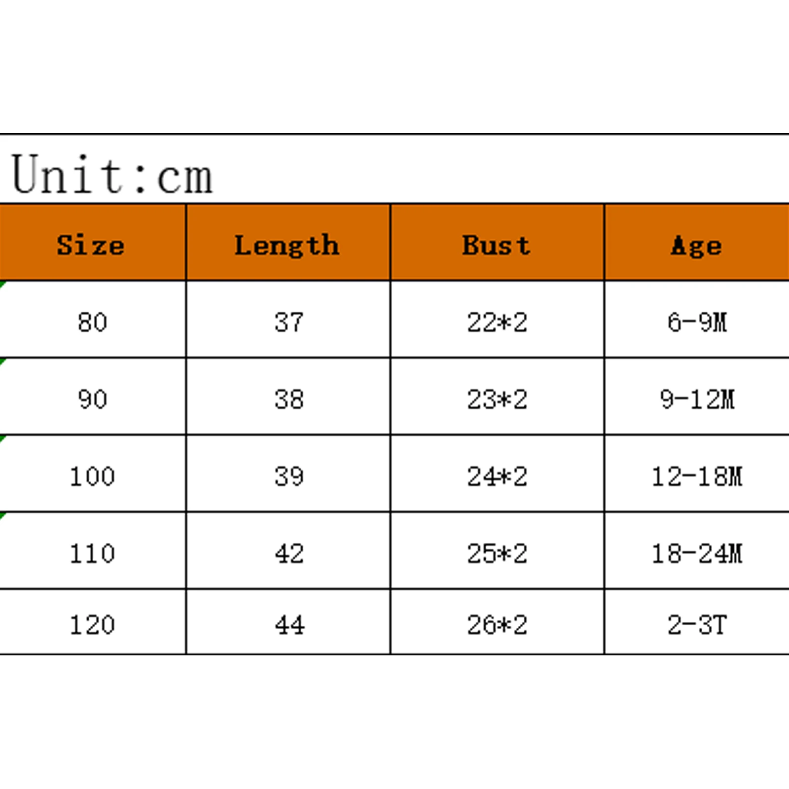 110Length: 16.54Bust: 19.68 Advised Age: 18-24 Months